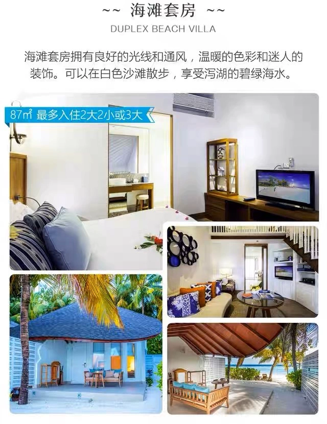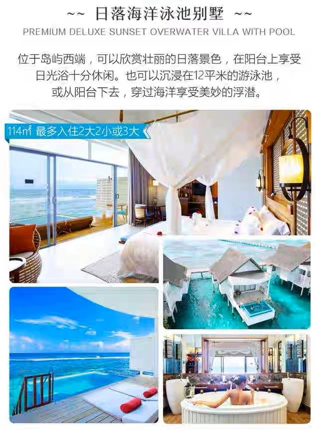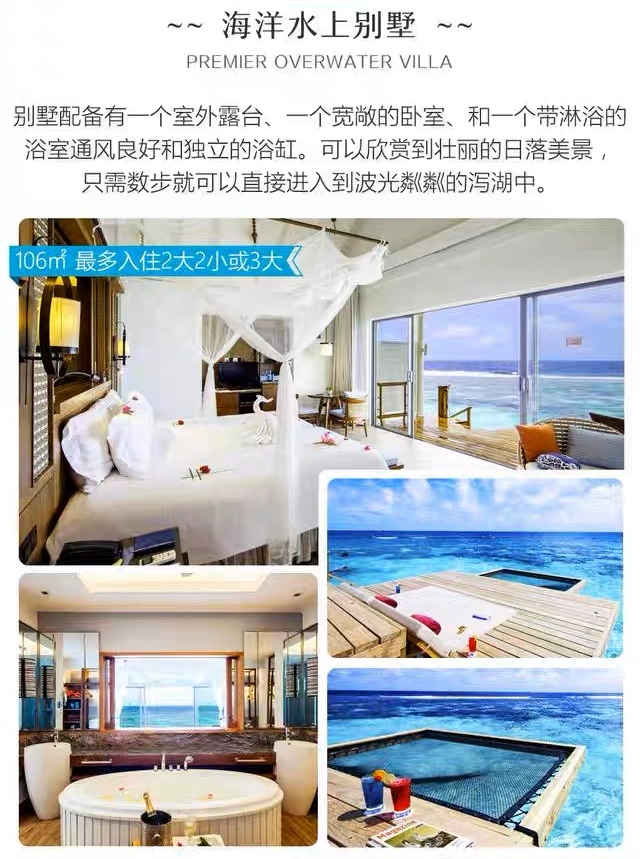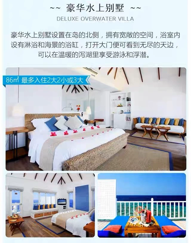 酒店房型:2晚 Duplex Beach Villa+2晚 Deluxe Overwater Villa 、水飞