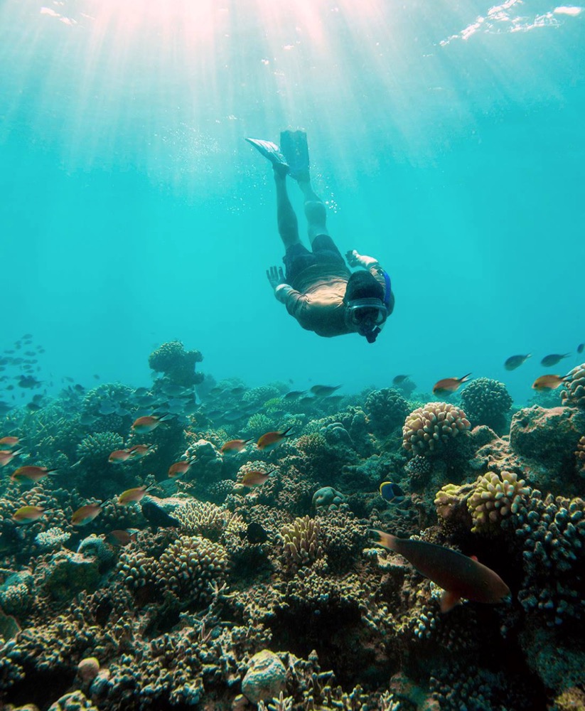 在伊甸园般的天然水族馆里,你可以同色彩斑斓的礁鱼一起畅游,探索美丽的海洋生物和水下景色。在隐蔽的环礁湖,您可以欣赏到无与伦比的景观——黄貂鱼、珊瑚鱼、小黑尖礁鲨鱼和偶尔出现的蝠鲼。探索鲸鲨。
