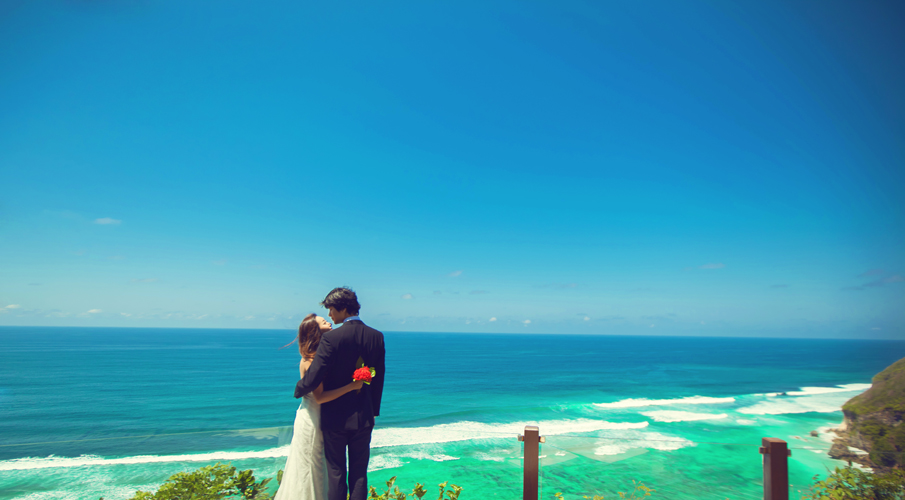 婚姻司仪在豪华沙滩举行宣誓交换仪式/戒指交换仪式