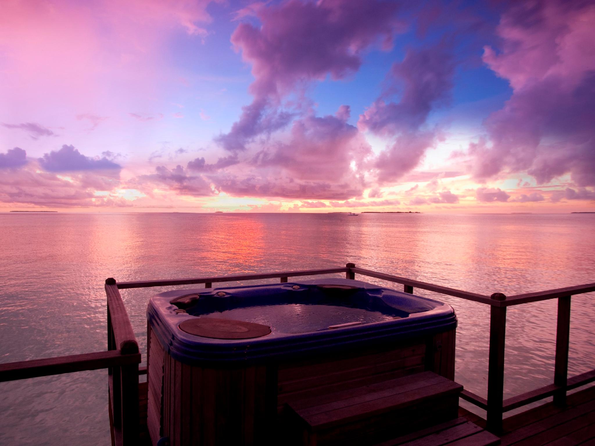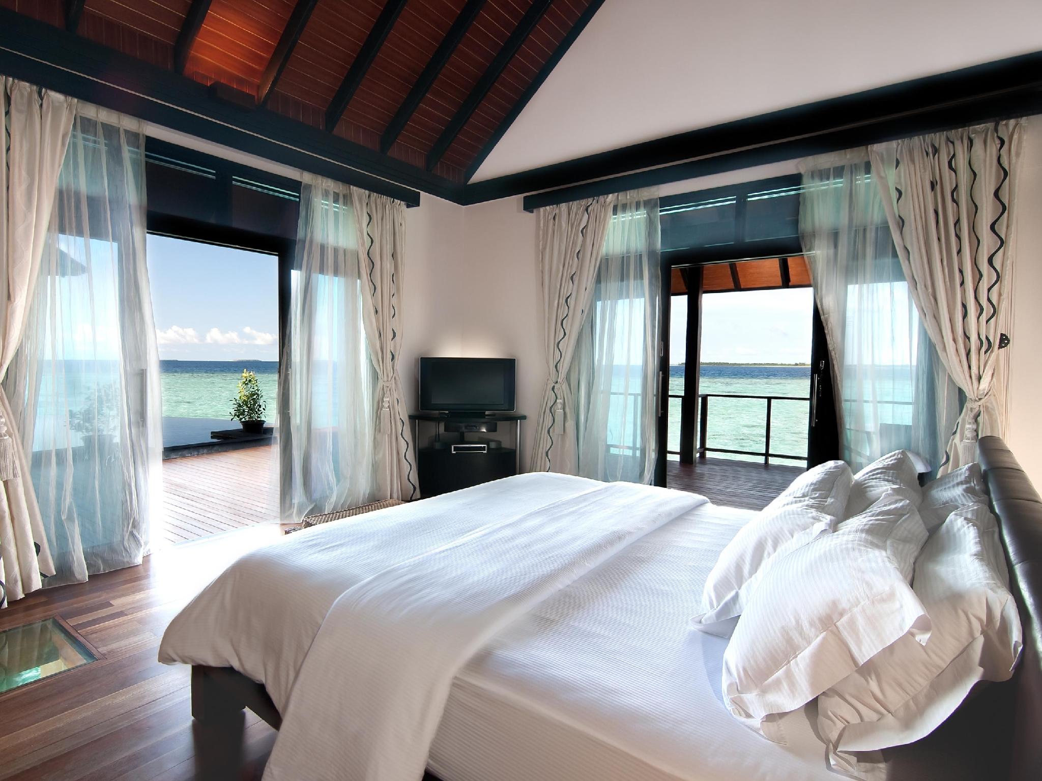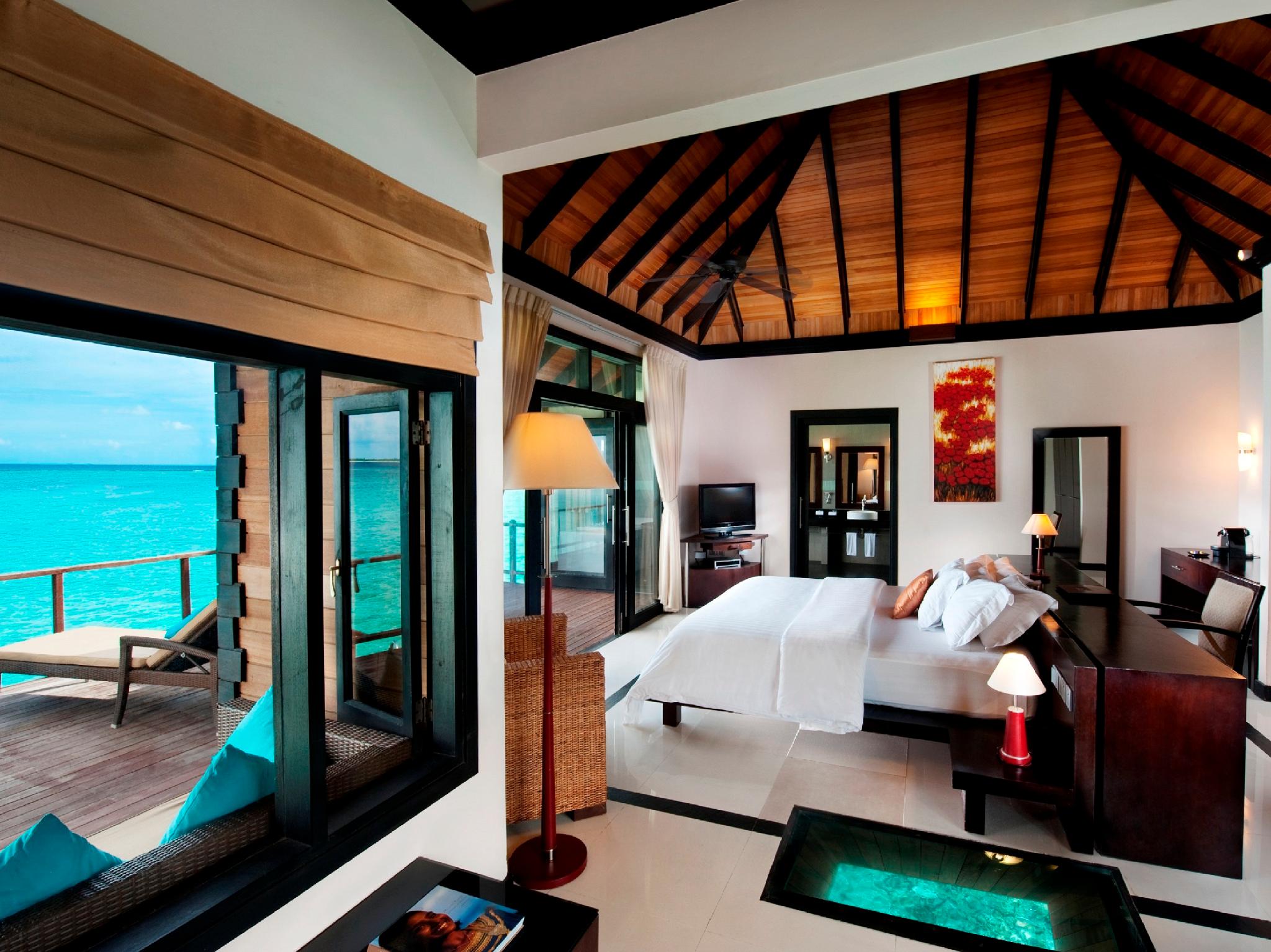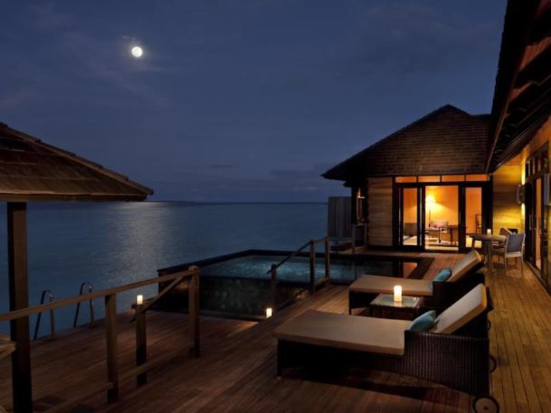 在水上套房可纵情享受带有一个主卧室和独立起居区的宽敞住宿空间。打开卧室的推拉门,客厅和浴室通往多层阳台,设有带熔岩石游泳池,小屋和户外用餐区的私人户外甲板。