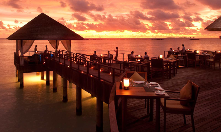 悠闲地坐在海边,享用当地食材和诱人的意大利风味相混合的美食。座位设在泻湖的上方,错落有致,在此能一边品尝让人垂涎的经典和现代创意美食,一边畅饮精心调制的鸡尾酒,还能欣赏美丽的海景,非常的惬意。