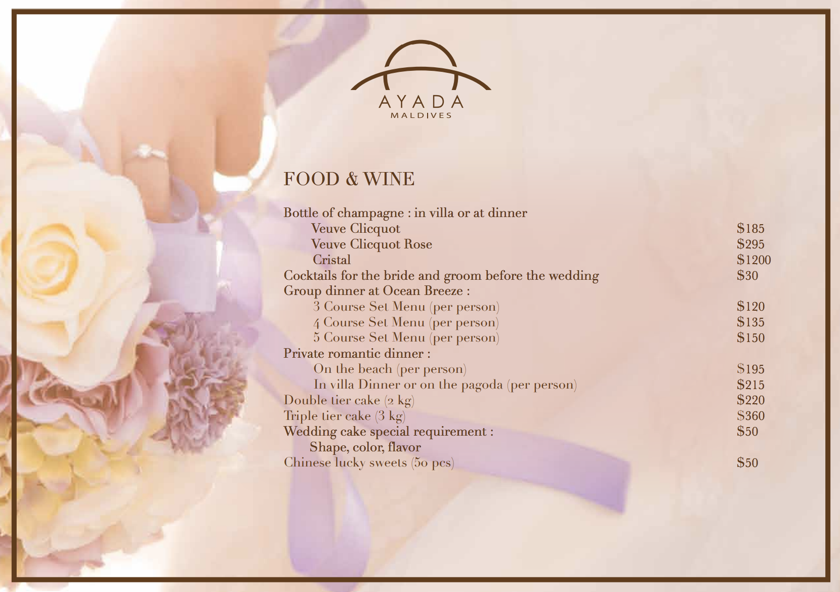 给新郎新娘婚前的鸡尾酒 $30