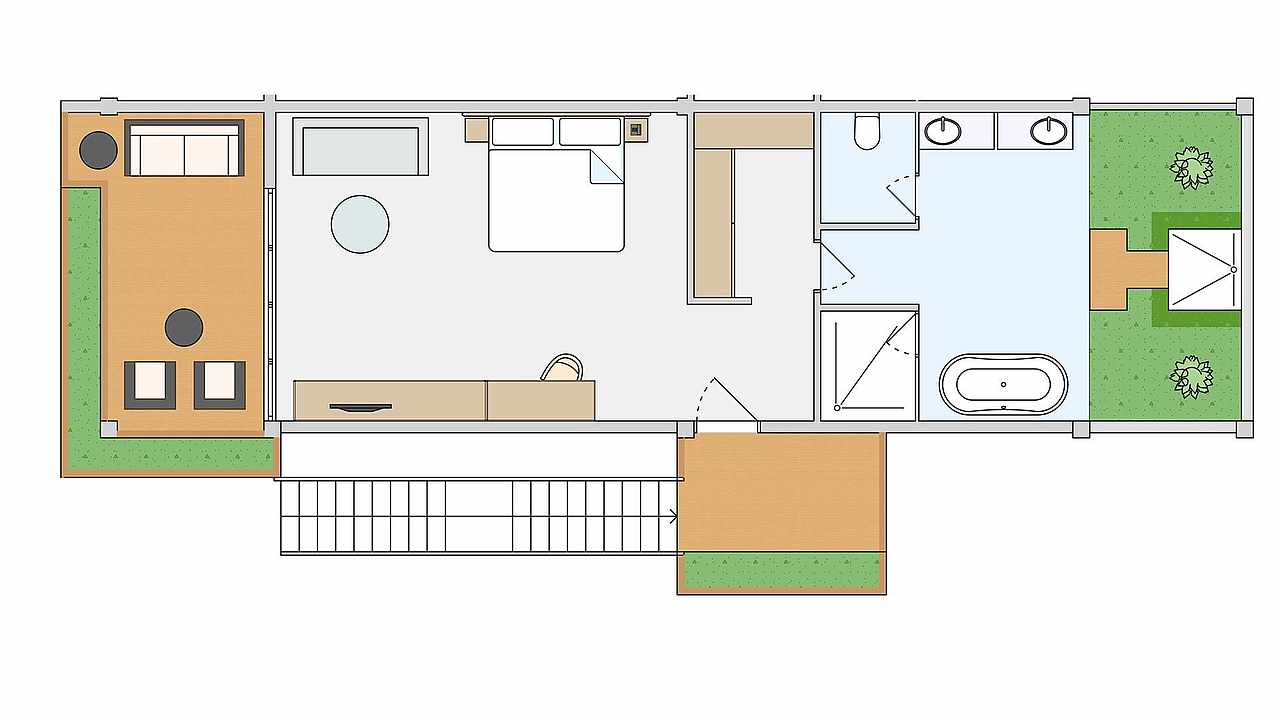 Double Room Sea View Superior 高级海景双人房位于海滨独栋小楼的二楼,可以欣赏到优美的海景。