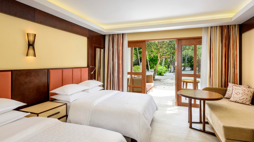 滨海豪华客房坐落于海边,拥有极致海洋美景可以直接通往沙滩,空间大,私密性好,每套别墅均设了露天的淋浴间、独立的浸泡浴缸与喜来登炫逸卫浴用品。