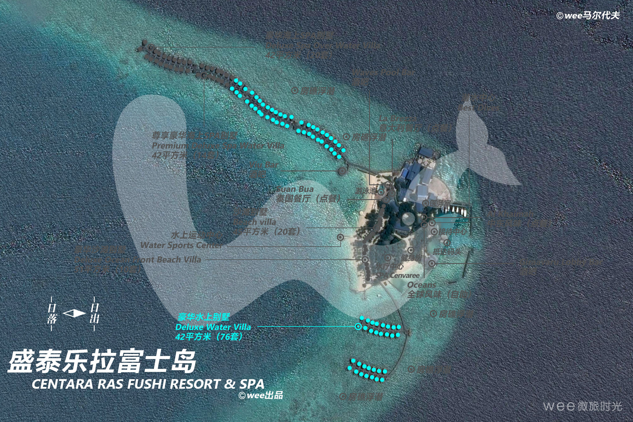 每天伴随着印度洋的美景起床,在温暖的水中来一次晨泳。豪华水上别墅伫立于波光粼粼的环礁湖上,只要步下台阶就能投入清澈见底的海水的怀抱。充满浪漫气氛的别墅拥有42平方米生活空间,备有加大双人床或两张单人床供选择,另设有独立淋浴的浴室。