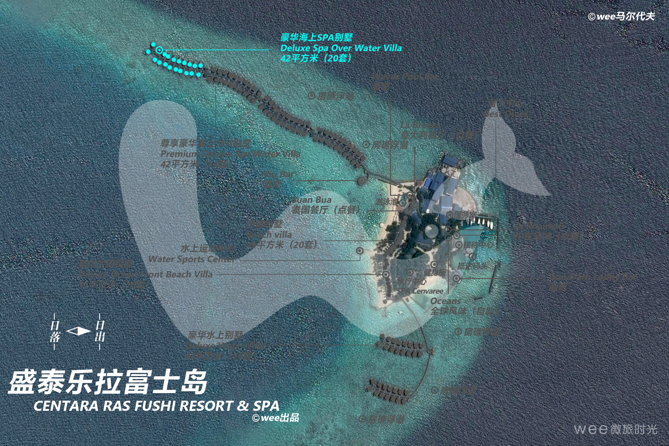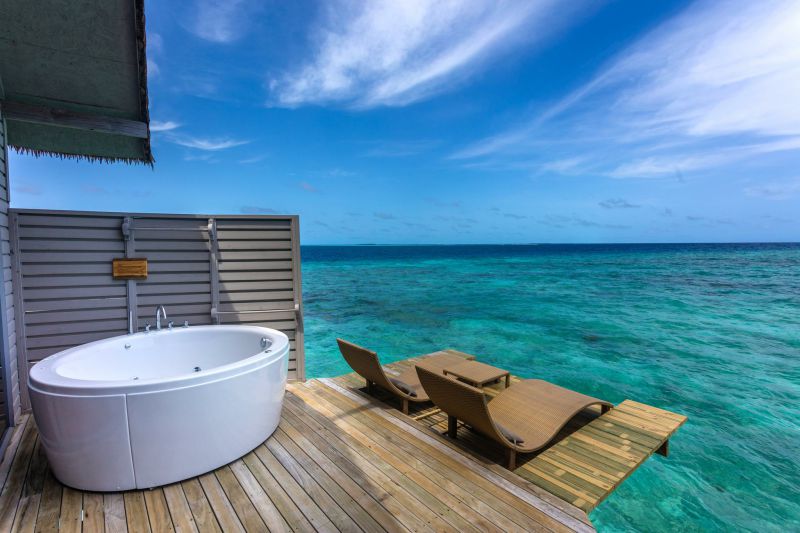 走过一段木制桥头,豪华海上SPA别墅就坐落在印度洋之上。可在充满珊瑚礁的海水里尽情游泳,潜水;亦可在户外带有SPA功能的浴缸内享受绝妙的印度洋海景。
