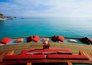 VIU酒吧为度假村的亮点之一,充满休闲舒适的气氛,供应各种点心和鸡尾酒,是放松心情,享受精致点心的完美场所。配有卧式座椅及水上网床,在此可欣赏海洋美景,绝佳的位置更可观赏梦幻般夕阳晚霞,还能透过清澈的海水观赏热带鱼群。