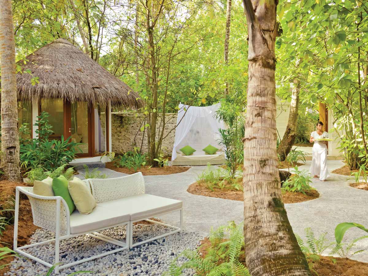 SPA水疗中心有海景房也有花园房,海景房就是面朝大海,花园房藏在花园里,很舒适惬意。或从水上静居眺望环礁湖,或是隐匿在私家花园里。