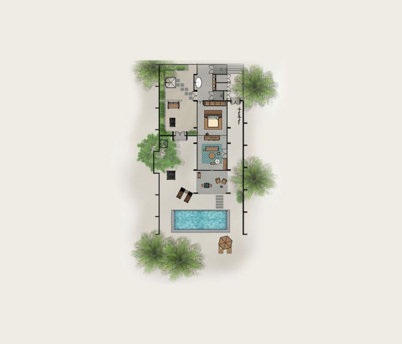 隐藏在岸边的Beach House(沙滩别墅)是沙滩和大海爱好者的完美选择,私人庭院中的吊床在微风中摆动,在高耸的树荫下设有宽敞的淡水游泳池,清凉中享受溶于大自然的浪漫。