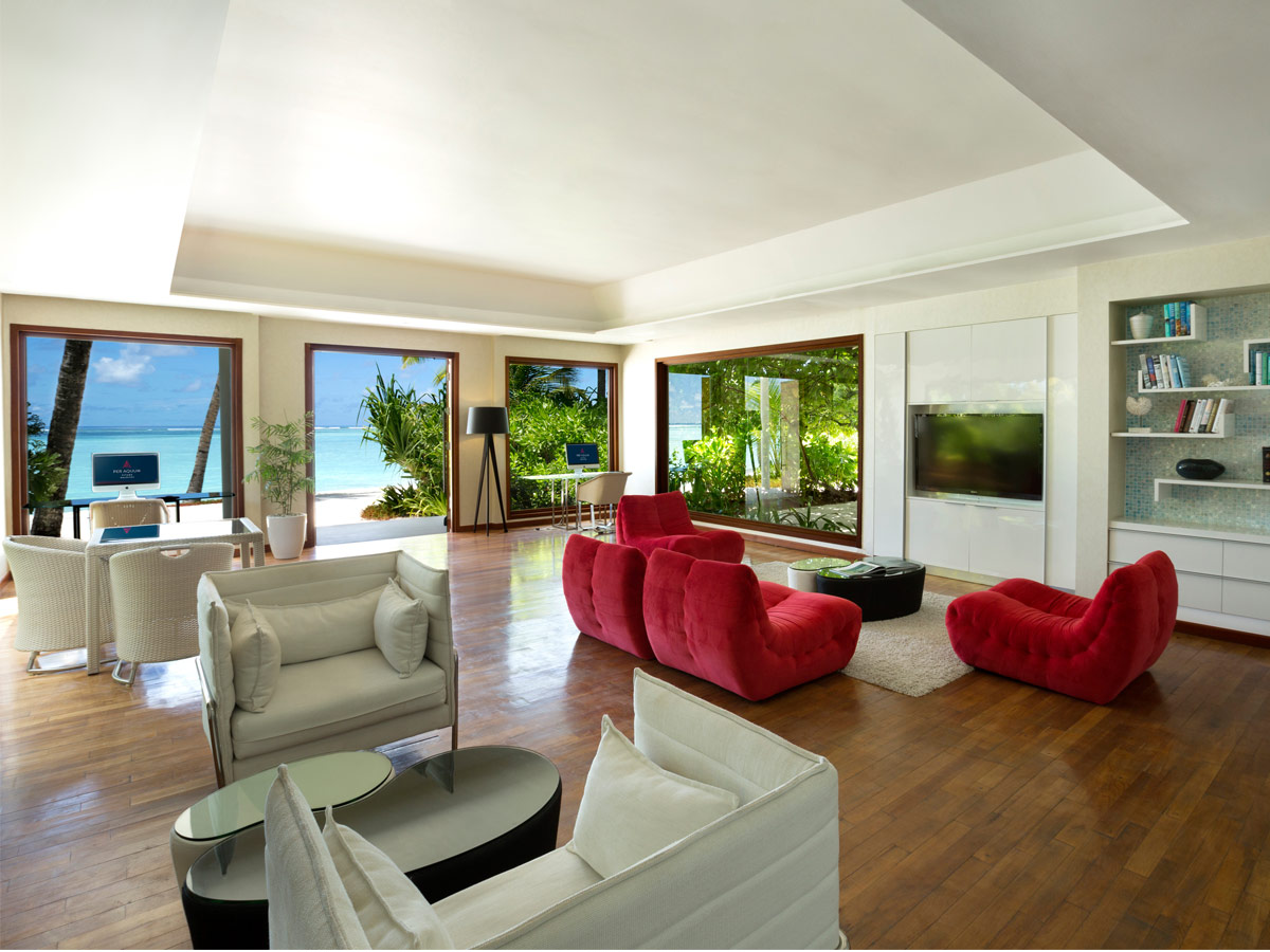 室内温度控制系统让人倍感清凉。在环礁的这个舒适角落,感受无比宁静的氛围,浏览DVD收藏、读本书或者聊聊天。