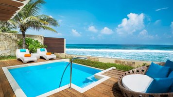 私密别致的海洋泳池别墅拥有壮观迷人的无敌海景,并提供带泳池、餐饮区和吊床的豪华室外休闲区。 幽僻静谧的地理位置、装饰华丽的室内外空间,使得这些别墅成为渴望摆脱一切压力、彻底放松自我的蜜月新人或情侣的绝佳居所。