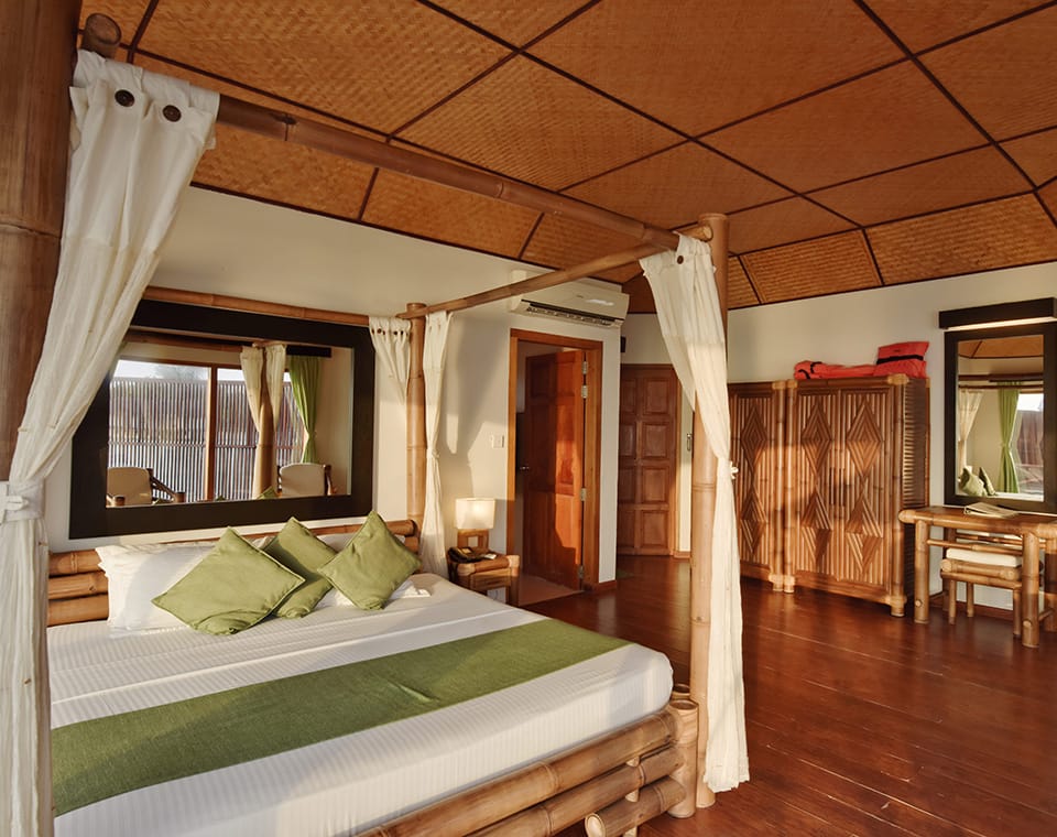 沙滩小屋配有现代化的房内设施,全景的玻璃镜子以及木质的私人躺椅平台,小屋充满了温馨舒适,带来不一样的入住体验。