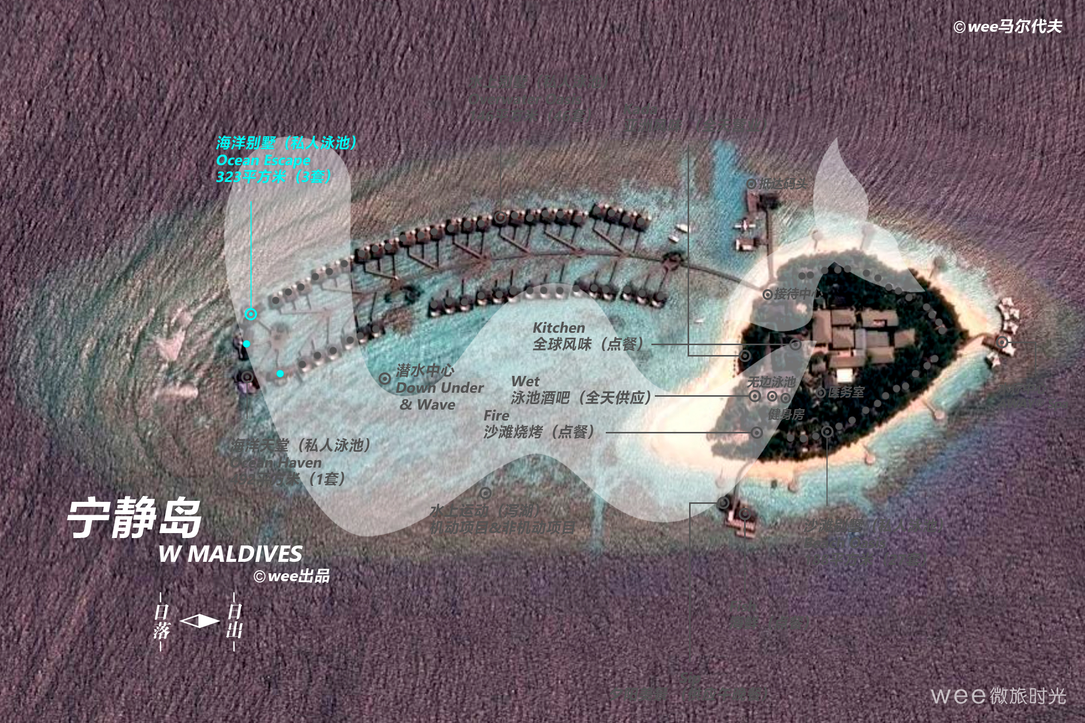 奢华的Ocean Escape(海洋别墅)主人套房设有W招牌床,或套房设有两张特色W单人床,室外休息区有舒适的沙发和毗邻的大型日光浴平台,遥望宁静的大海,可以根据特殊要求在烧烤炉上自己烹制自己的日常活动。