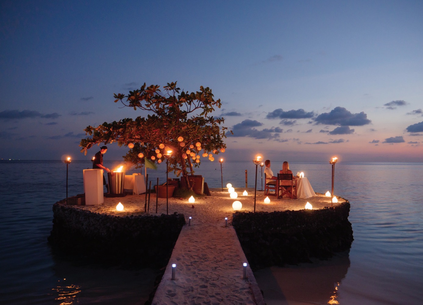 漂浮在宁静的水面上的多尼号,在马尔代夫唯一的水下温泉享受卓越的治疗,在浪漫的私人晚餐和香槟早餐上品尝精致的风味和质地,Huvafen Fushi提供了说“我愿意”或重温誓言的绝佳地点。