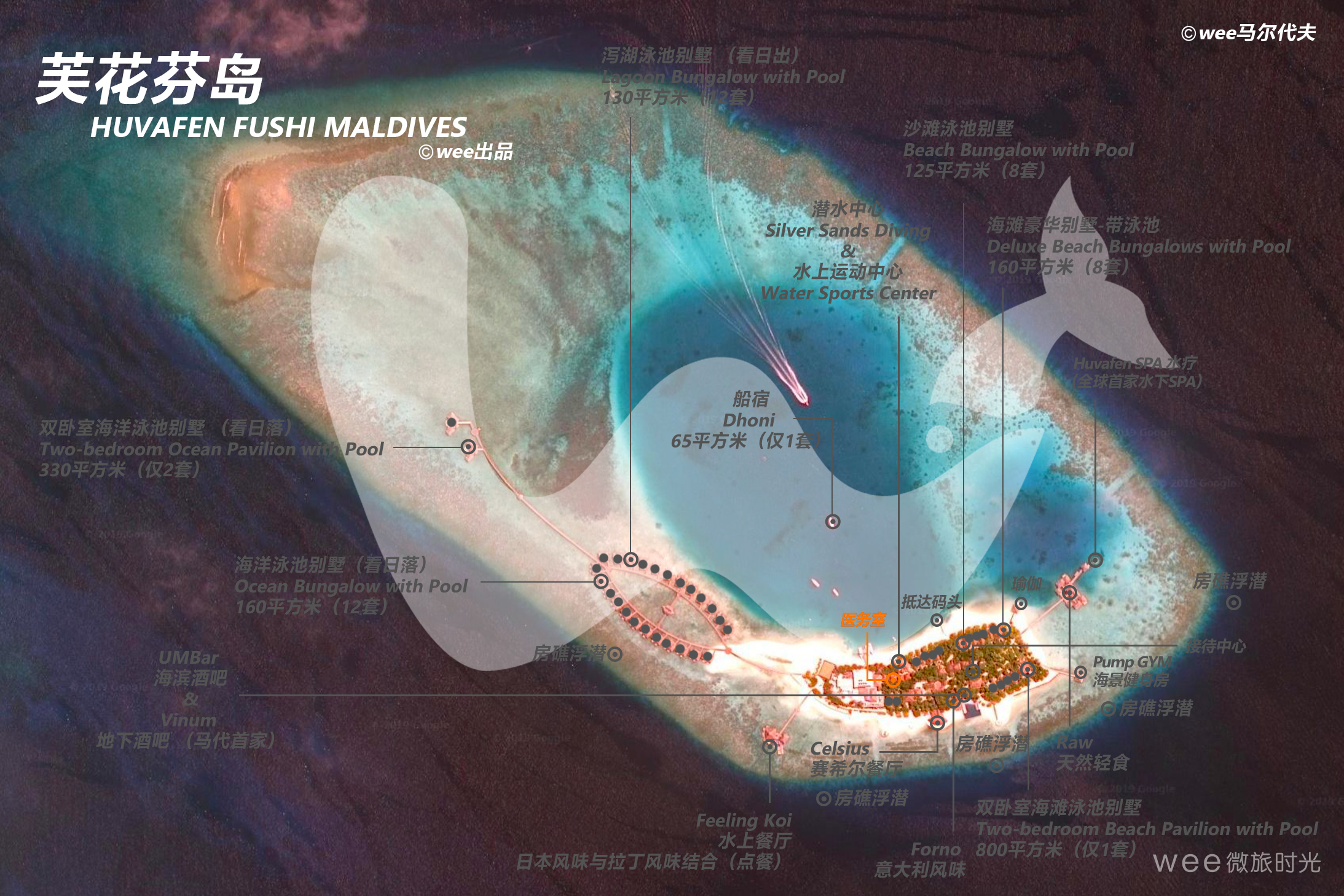 芙花芬岛度假村(Huvafen Fushi Maldives)位于北马累环礁西侧,环岛周长920米,在马尔代夫属于小型度假岛屿。属于PER AQUUM酒店品牌,于2004年在一片喝彩中开业后就受到了极大的追捧,几乎立即引发了马尔代夫全国范围内无数度假村的效仿,属于6星级酒店。后在2014年与尼亚玛岛一起被安娜塔娜集团所收购,也因此正式跨入全球奢华酒店品牌旗下。