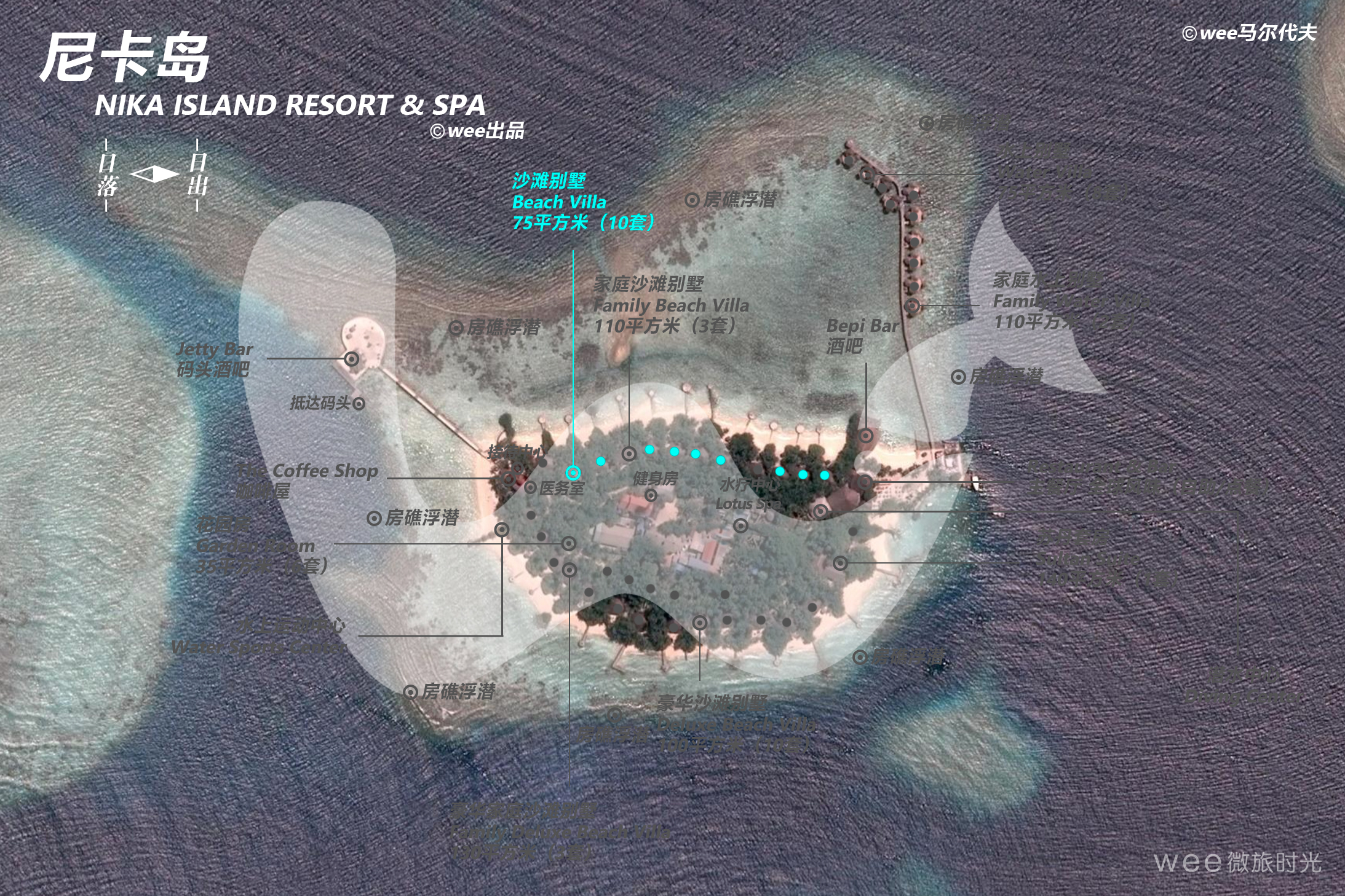 独特的原创建筑风格使Nika成为时尚领头者。建筑主体完全由珊瑚块垒成:别墅的曲线形状从海洋贝壳中汲取灵感。木制屋顶覆盖着岛上生长的古老棕榈树叶子。