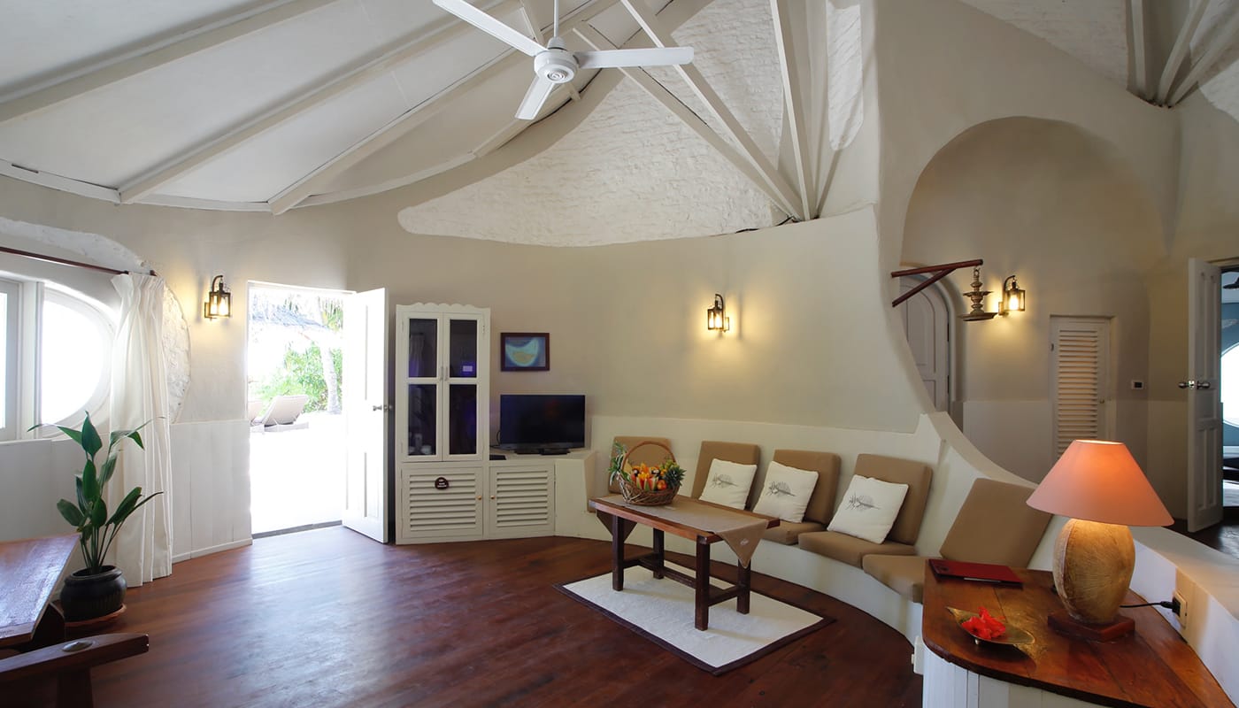 海滩别墅位于岛屿的北侧,俯瞰着一个大型泻湖,可以从自己的私人海滩游泳进入堡礁。所有海滩别墅均采用天然材料建造,符合马尔代夫的建筑遗产原则。还建有带凉亭和热水浴池的花园,郁郁葱葱的植被将别墅相互隔开以确保隐私。One Beach Villa酒店已经进行了残疾人便利改造。