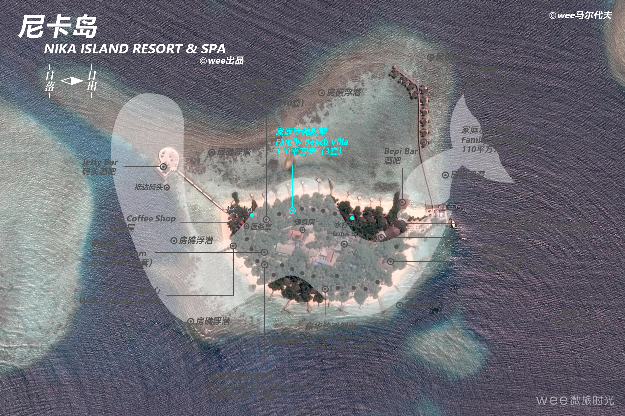 家庭海滩别墅是大家庭或朋友团体的理想选择。别墅位于岛屿的北侧,俯瞰着一个大型泻湖,可以从那里游到堡礁。这些别墅采用天然材料建造,根据马尔代夫的建筑遗产原则,周围环绕着带凉亭和热水浴池的花园。郁郁葱葱的植被负责保护别墅的隐私。