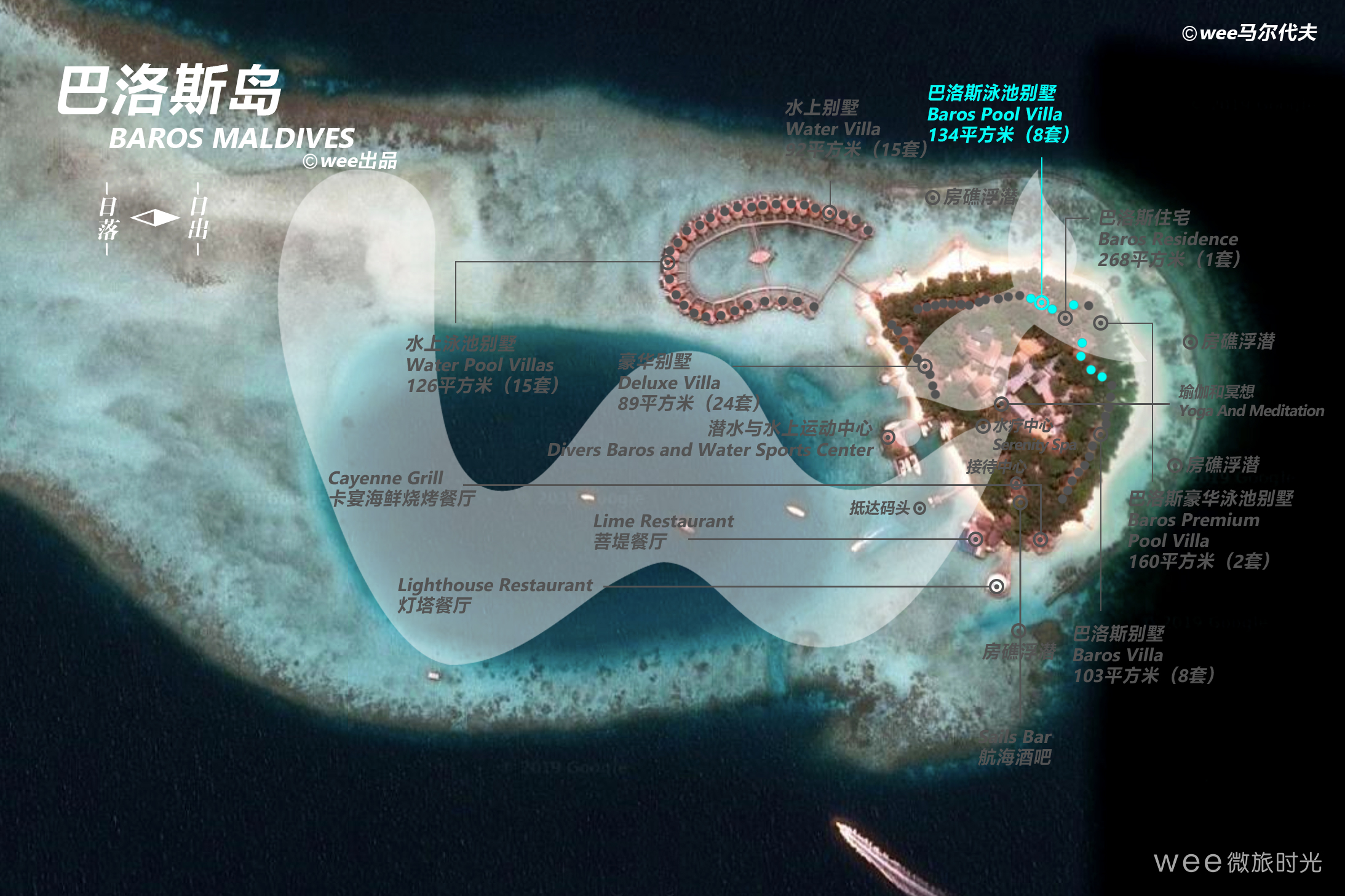 私人海滩花园,热带树木下的阴凉池 - Baros Pool Villas距离泻湖仅有几步之遥,提供宁静的休息环境。在你的甲板上,有一个带蓬的沙发床和日光躺椅,在这里可以沐浴在海景中。白沙滩,碧绿的海水和珊瑚礁的奇观距离酒店仅有数米之遥。内部空间充满了轻松的魅力 - 舒适的床,丰富的木制家具和定制的Baros设施。