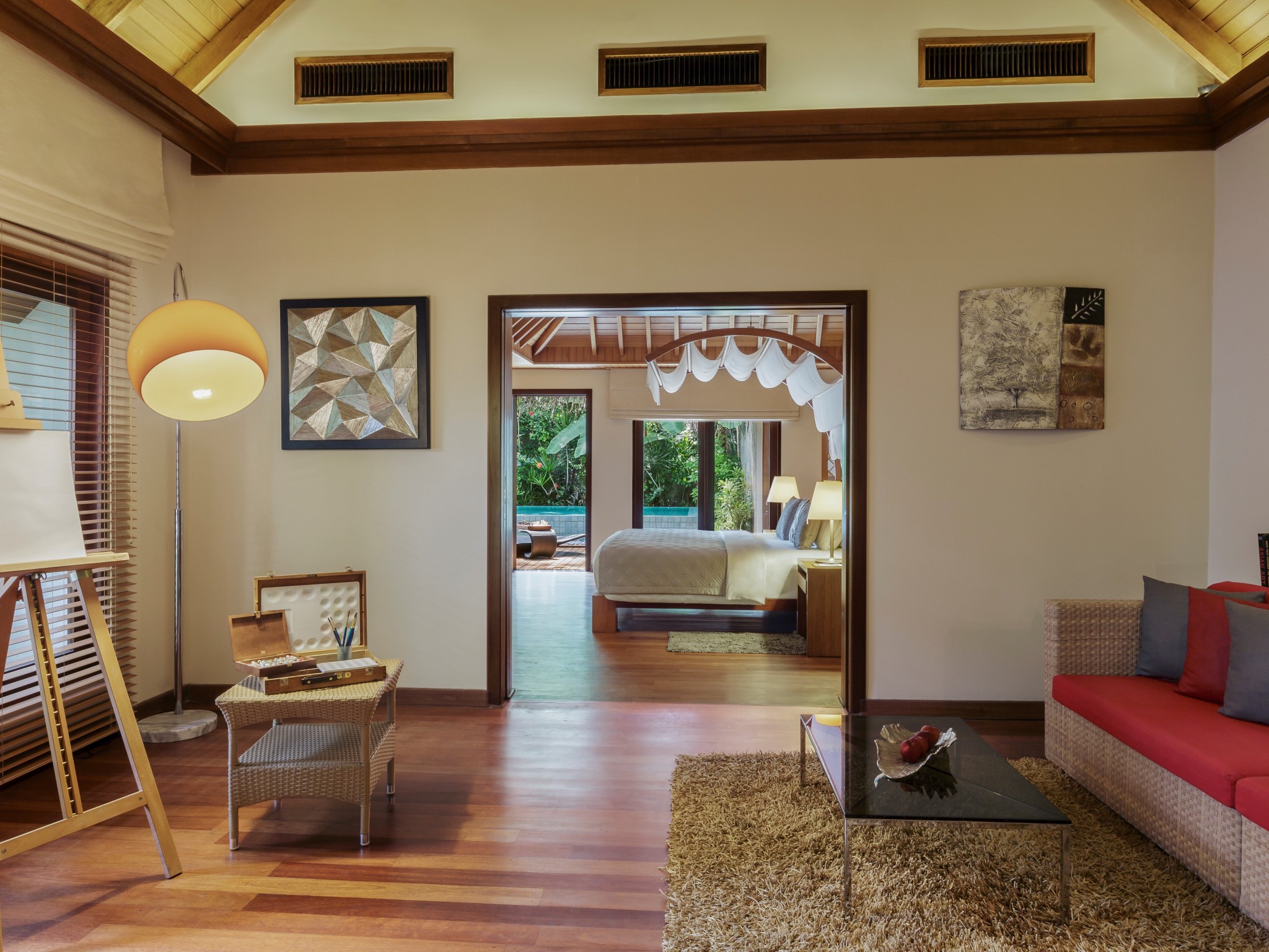 在室内,独立的卧室和起居室为你提供所需的所有居家感受,而宽敞的浴室则为你提供豪华的设施。室内淋浴,深度独立式浴缸和户外淋浴,棕榈树和许多植物。