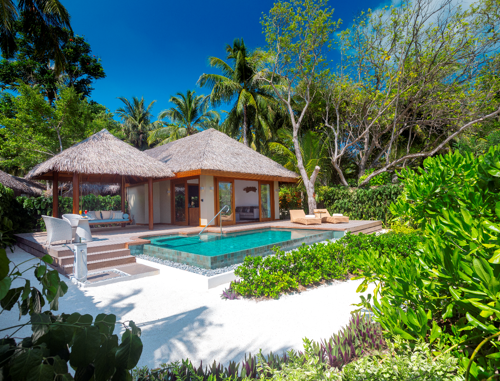 这些独特的套房蜿蜒穿过茂密的树叶,拥有木地板和高高的天花板,采用传统的马尔代夫设计概念。毗邻的休息室设有55英寸电视,可收看电影和互联网,还有一张舒适的沙发供客人放松身心。滑动玻璃门通向宽敞的木质甲板,非常适合在19英尺x 10英尺长的游泳池旁边的星空下享受日光浴或私人用餐(带冷热按摩浴缸),装饰有光纤灯,在晚上营造出神奇的氛围。