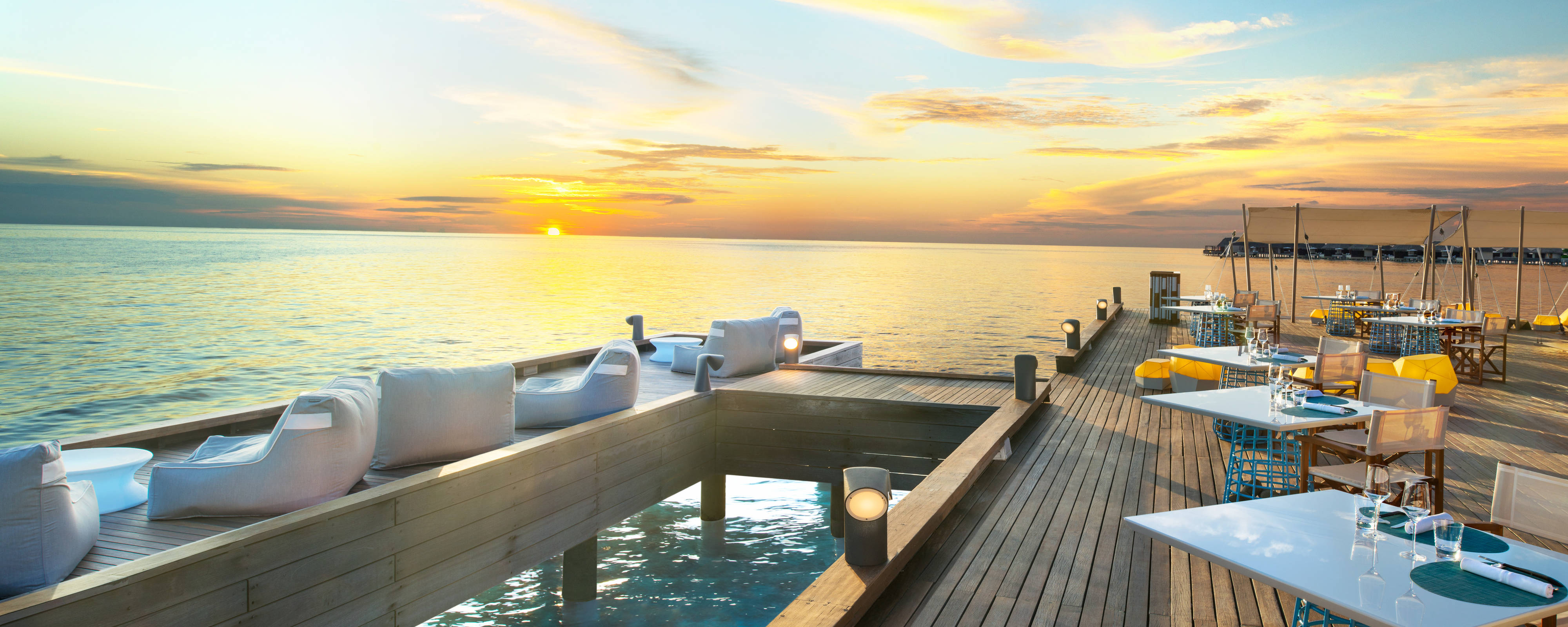 FISH餐厅不但特别注重当地海产品食材的新鲜,也供应来自全世界各地的优质进口产品,行政主厨可以为任何口味创造完美的品尝菜单。这个特色的场地坐落在水面和星空下,两人水上桌可以欣赏到印度洋的壮丽景色。