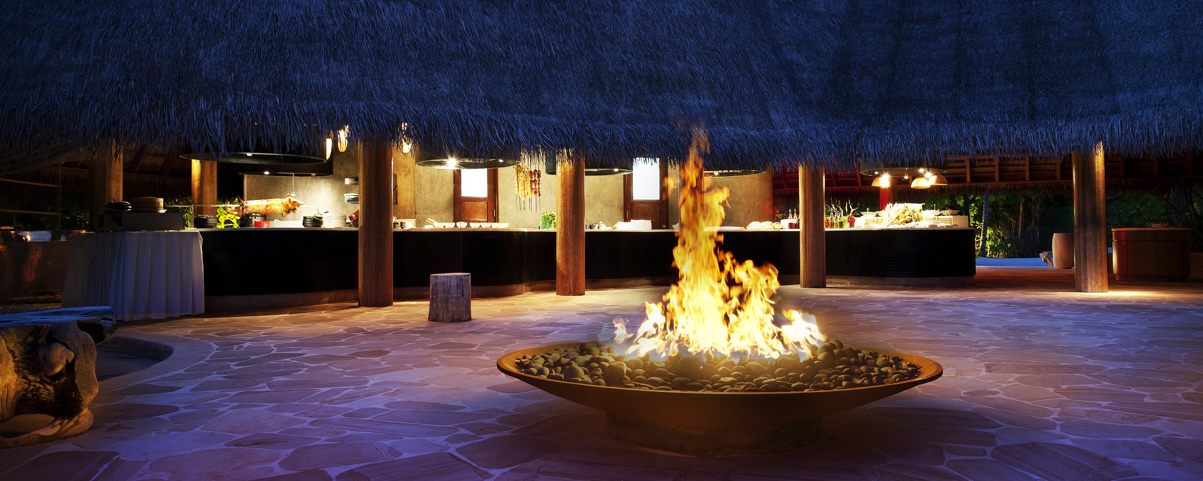 FIRE是由印度洋的柔和风抚摸的露天餐厅,一个巨大的火坑位于中心位置,桌子坐落在棕榈树旁边,真正的木炭,泥炉烤箱,开放式烤肉架,进行激情的晚宴。指定区域允许吸烟。