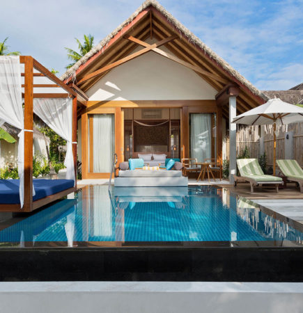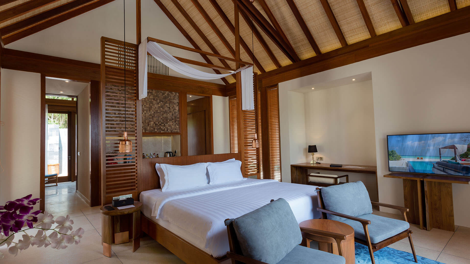 Beach Pool Villa别墅享有闪闪发光的白色沙滩和绿松石泻湖的景致,面积为155平方米,提供完美的私人住宿,设有大型海滨花园和木制日光浴平台,配有软垫沙发床和日光躺椅。私人6米长的游泳池是别墅体验的核心。