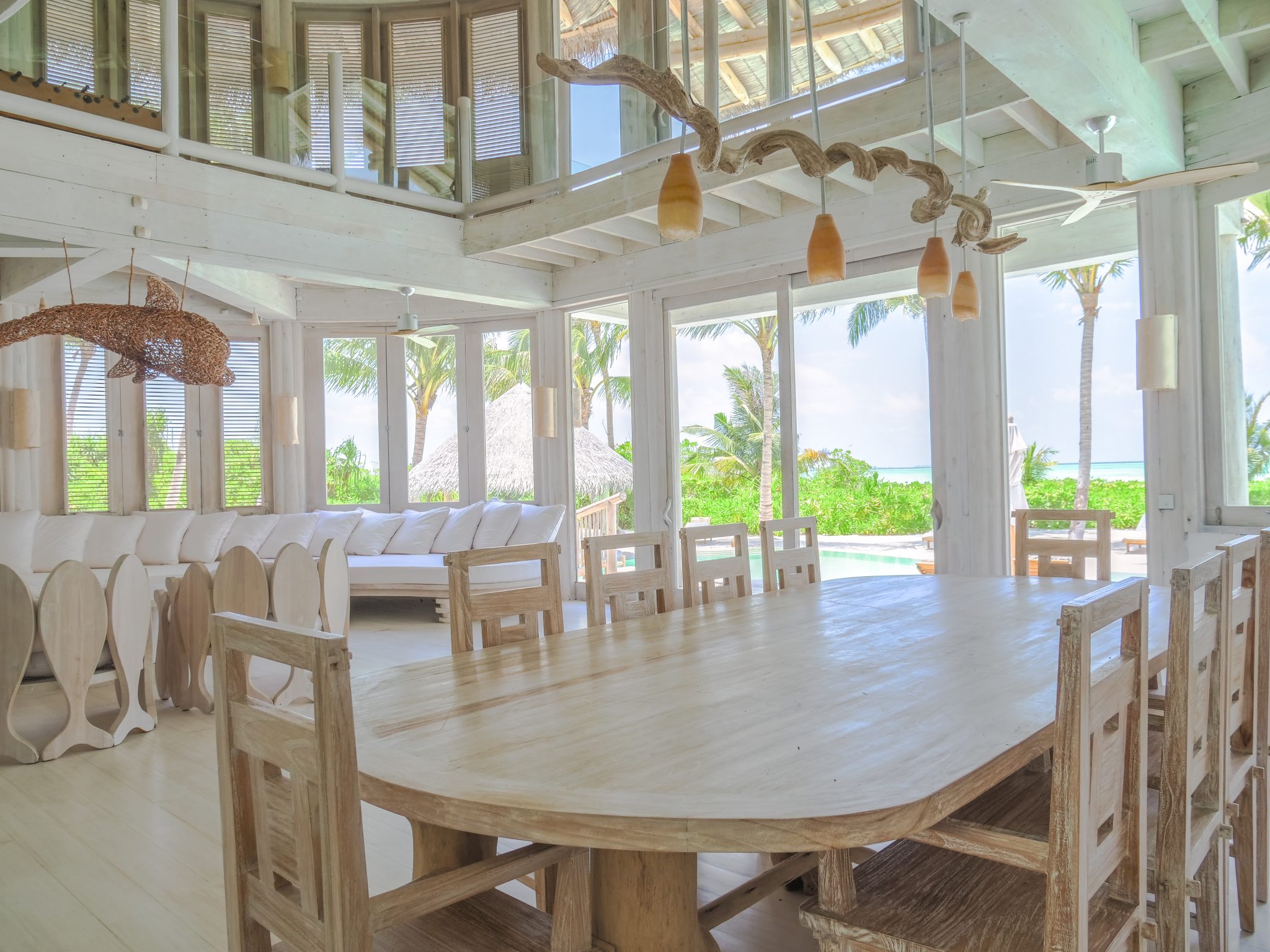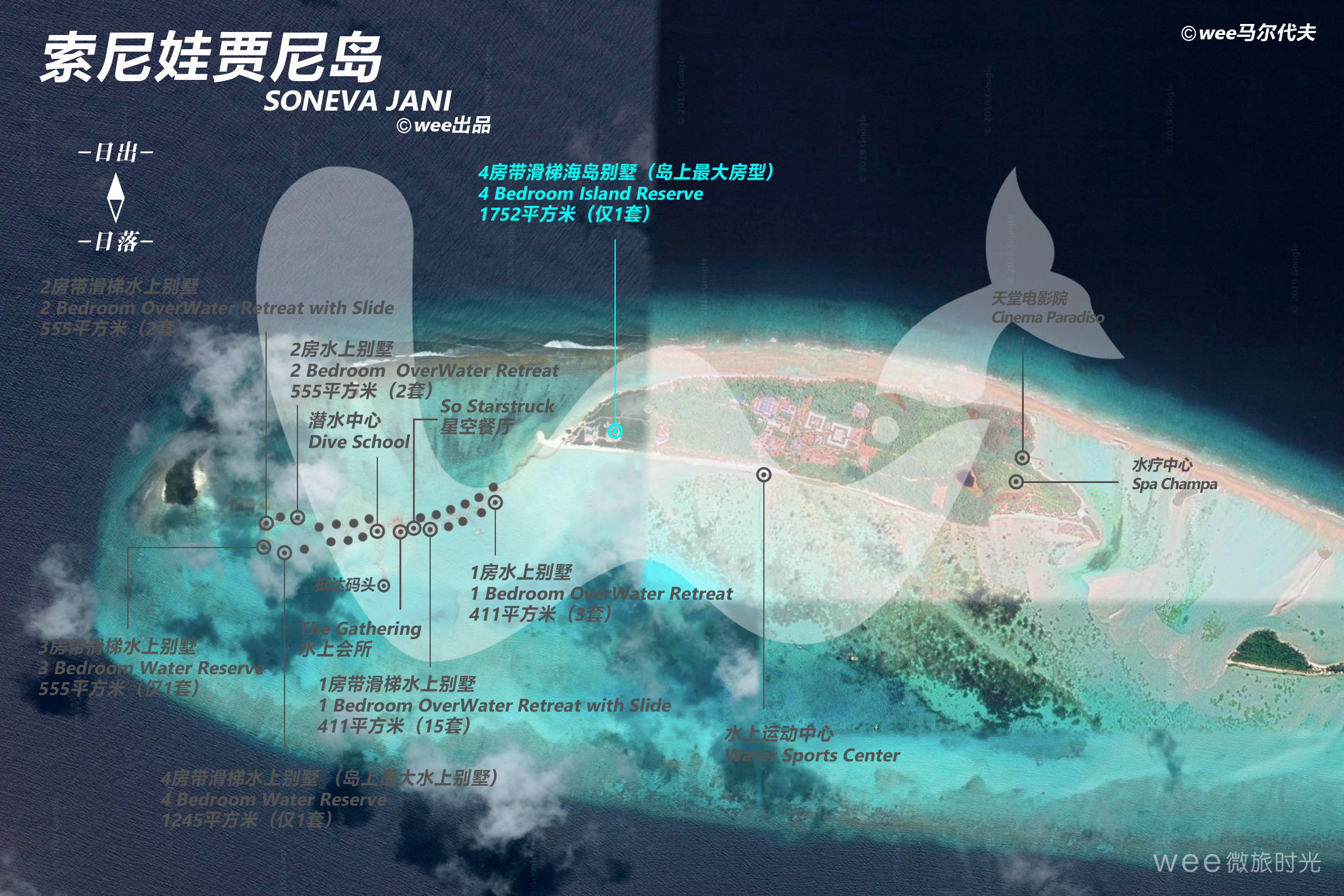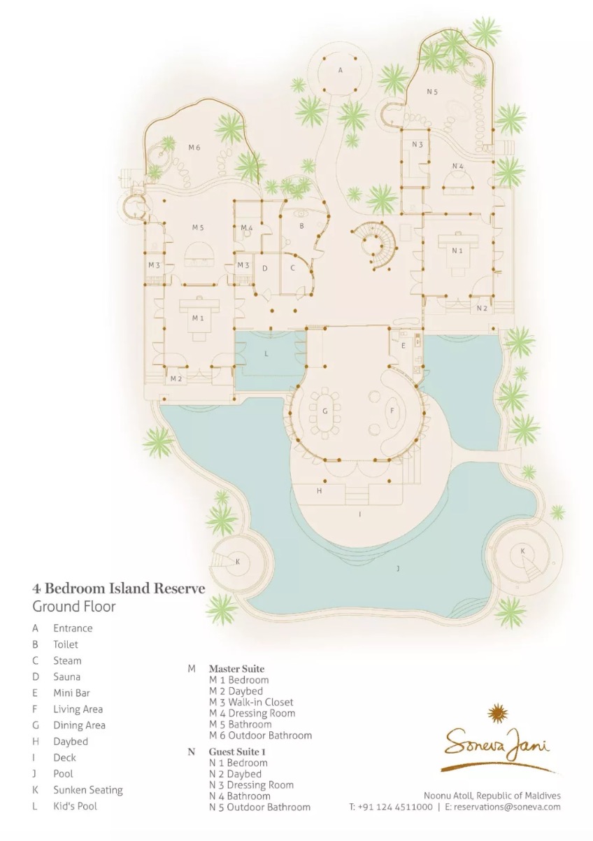 宽敞的4房岛上别墅套房尽显奢华,同时又可进行个性化定制。室内室外休息区宽敞多样,包括蒸汽浴缸、更衣室、桑拿房、主卧、电视休息室、用餐室、私人泳池、厨房与酒窖。二楼配有三个带有卫生间及化妆间的房间。