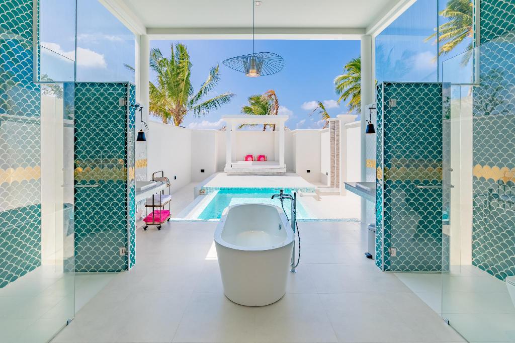 伊露薇莉岛上特别的苏尔旦套房,可以在沙滩上享受奢华的私人度假体验,里面有令人惊艳而宽敞的内部空间,还有宽敞的私人泳池。