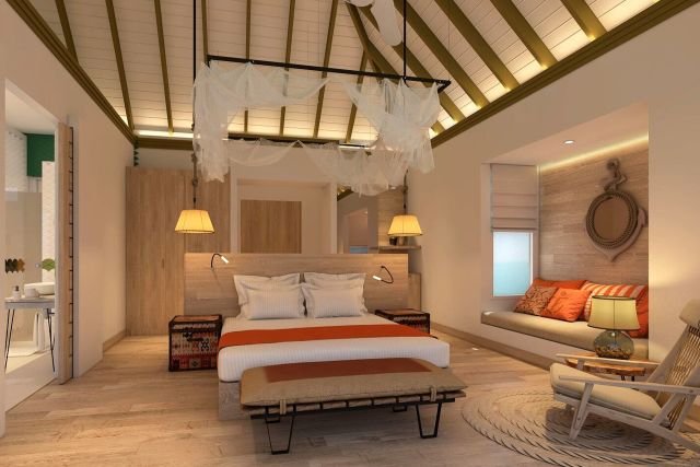 伊露薇莉岛(Sun Aqua Iru Veli)2018年开业,属于SUN SIYAM酒店品牌,环岛周长928米,在马尔代夫属于小型度假岛屿。沙滩5分/最高5分,100%环岛,平均宽度10米;浮浅4分/最高5分,房礁50%环岛区域,距离沙滩最近65米。