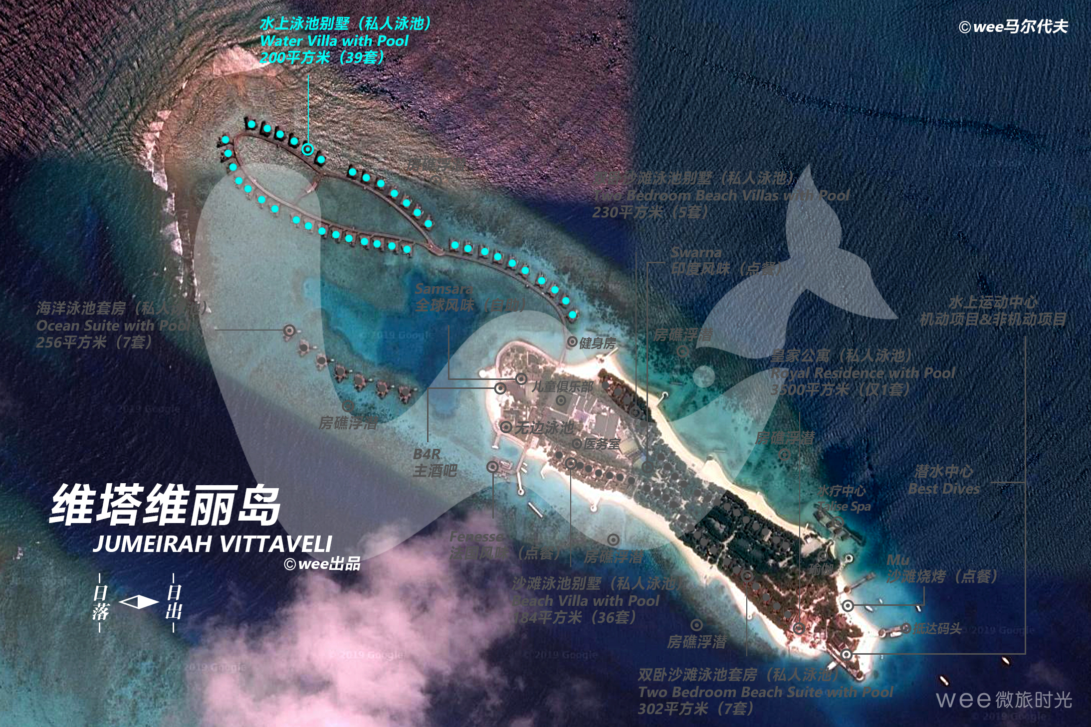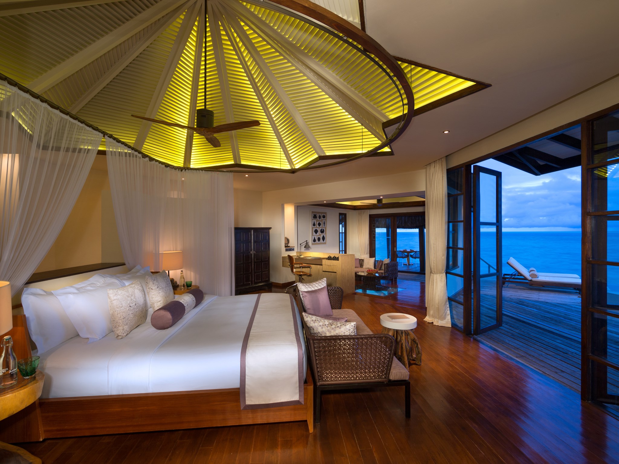 别墅坐拥优越的地理位置,纵享岛上绝美的日落景致,在此饱览迷人的大洋美景。透过明亮的落地窗将美景尽收眼底;在私人甲板上近距离感受大自然的清新舒畅;或在晚餐前使用户外淋浴,放松身心的同时开阔眼界。
