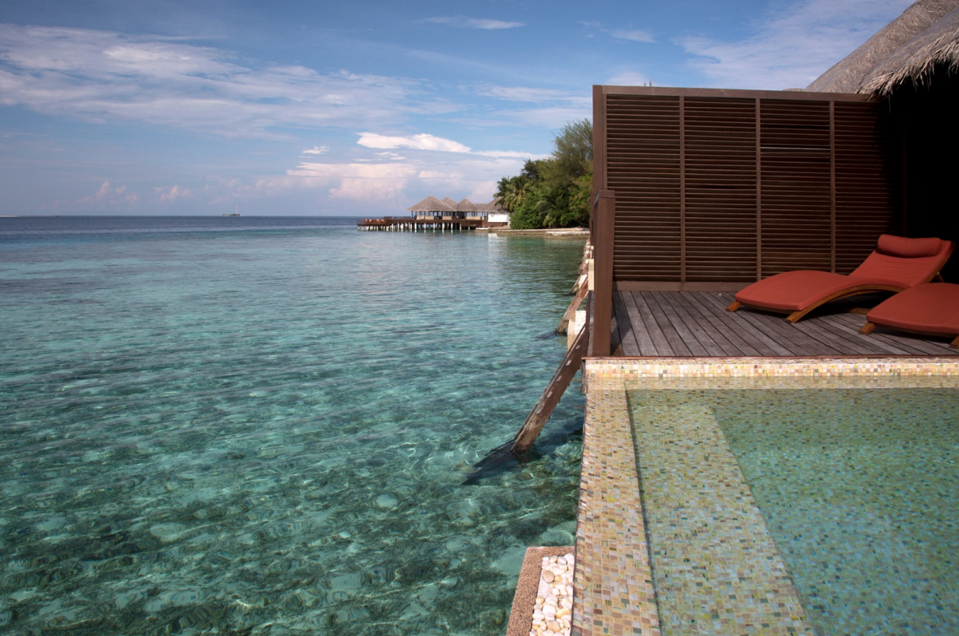 水上别墅内提供特大号的软床,宽敞的浴室内设有豪华双洗手盆,和超大的浴缸。充满阳光的私人阳台连接着的是一个私人泳池,还有一个露天浴室可供使用。在这里游泳的时候,放眼望去那赏心悦目的无敌海景。