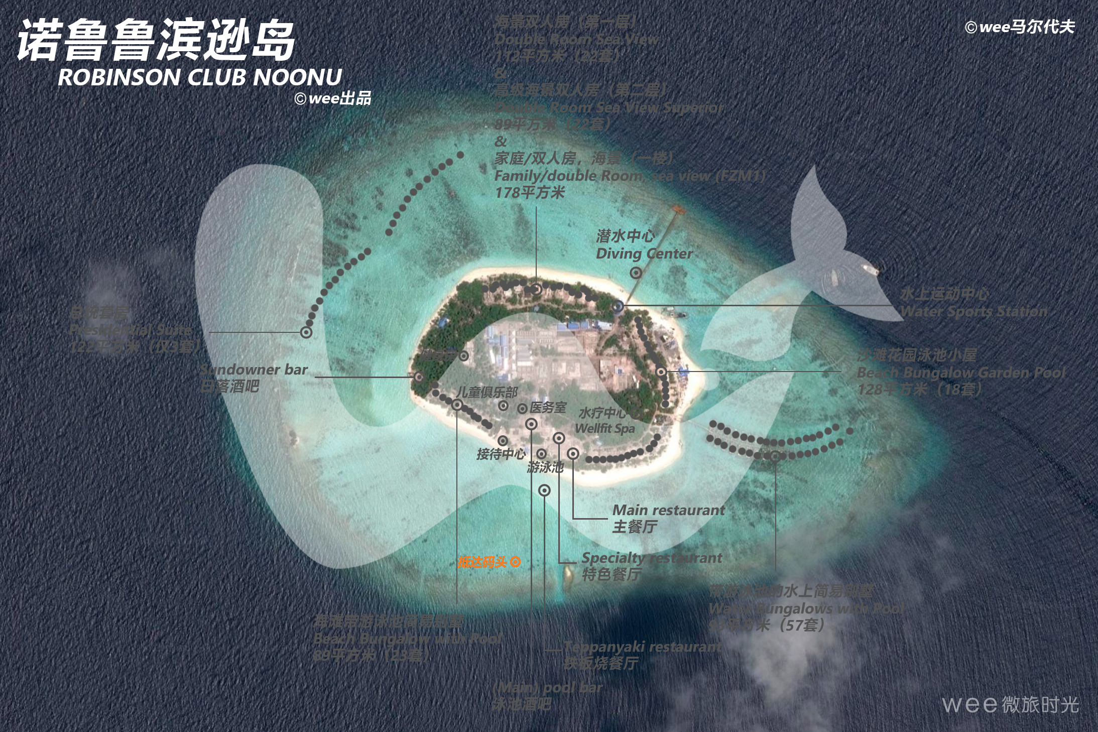 诺鲁鲁滨逊岛位于诺鲁环礁,距离马累机场180公里,可以水飞登岛也可以国内航班飞行+快艇登岛。