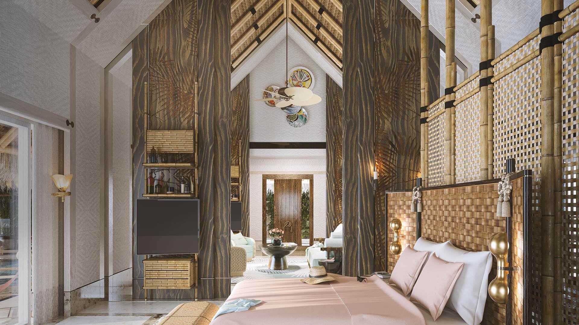 这142平方米的豪华别墅可容纳多达4人,拥有两个游泳池,非常适合举办小型的派对。这栋拥有两个游泳池和大片的绿地,可供小团体和家庭入住。套房设有两个无边泳池,后院为私人海滩花园以及带特别用餐区的海景户外露台。