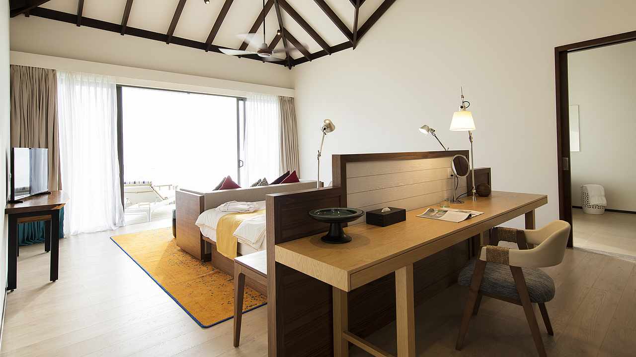 位于泻湖(码头尽头)上方,享有优美的海景。总统套房是岛上面积最大的房型。