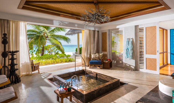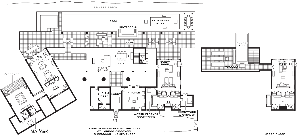 非凡的海滨假日加上温馨的居家体验,这就是我们为您营造的奢华居所。三卧室双层宅邸配有 80 米私家海滩、两个泳池、观星休息区和宽敞的户外起居空间,25 米海滨泳池任你开怀畅泳,而第二层泳池通过壮观的瀑布泻入其下的主泳池。另外还有贴心敬业的工作人员提供 24 小时协助。