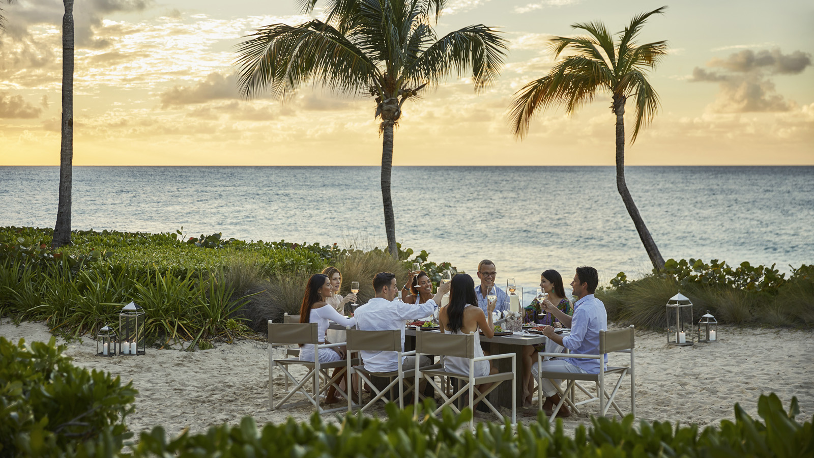 悠闲地坐在蓝色海滩的私人餐桌旁,享用主厨 Mirko 为你准备的新鲜美味、味道浓郁的意大利美食,任凭柔软的白沙渗入趾间,轻柔的白云在头顶上随风飘絮。