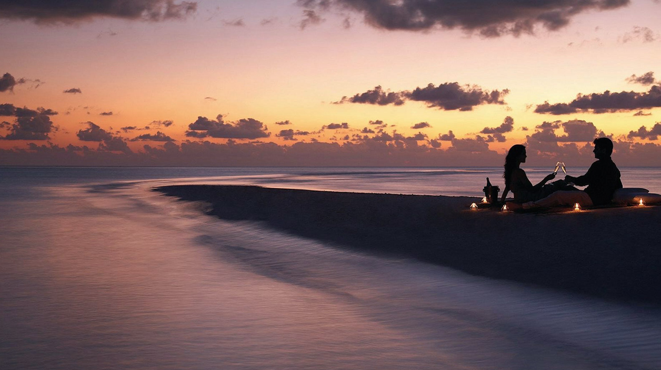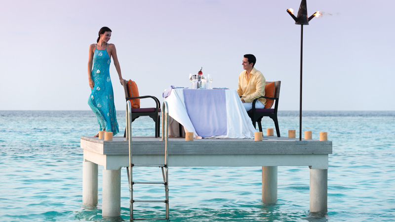 日落时分,乘坐快艇来到幽静而美丽的沙洲,享用全世界最僻远、最动人的私密晚餐。望着漫天繁星,悠闲地坐在用沙子堆砌而成的餐桌旁,感受烛光散发出的浪漫气息,品尝私人主厨用魔术般的精湛厨艺为您精心烹烤的晚餐。
