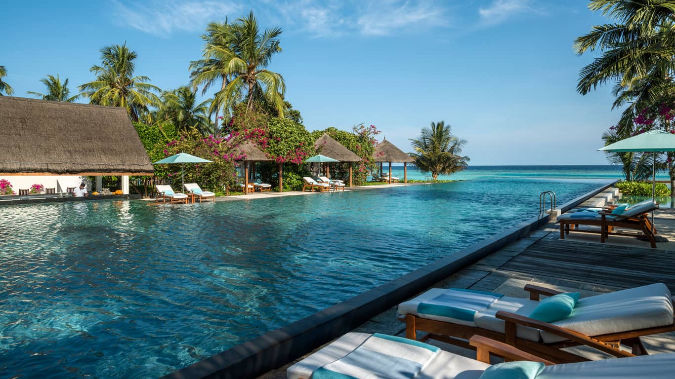 50 米(164 英尺)长的无边际泳池是马尔代夫唯一具有奥运规格的泳池,建于礁湖之上,毗邻 20 米(66 英尺)长的海水泳池漂浮物。