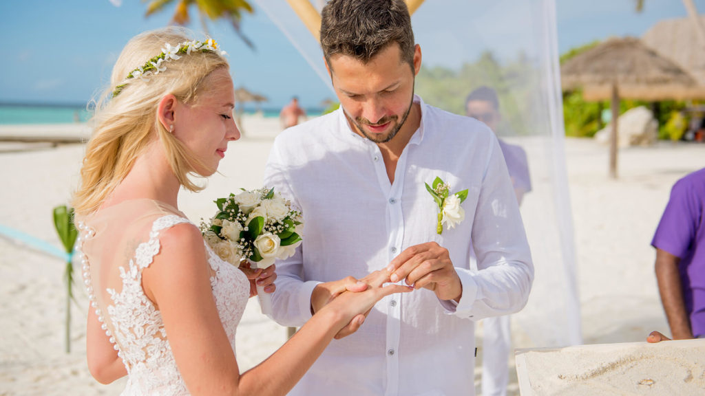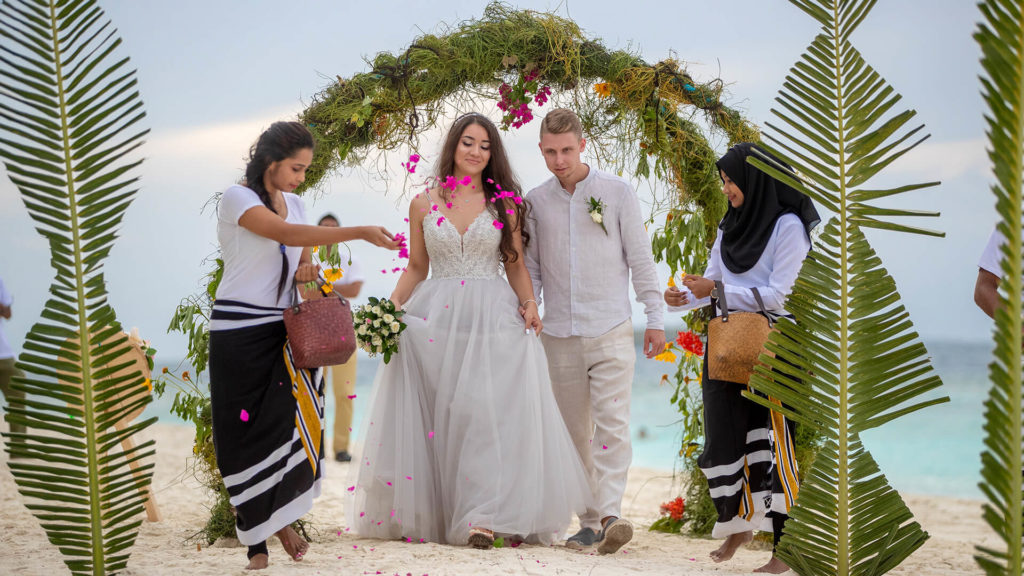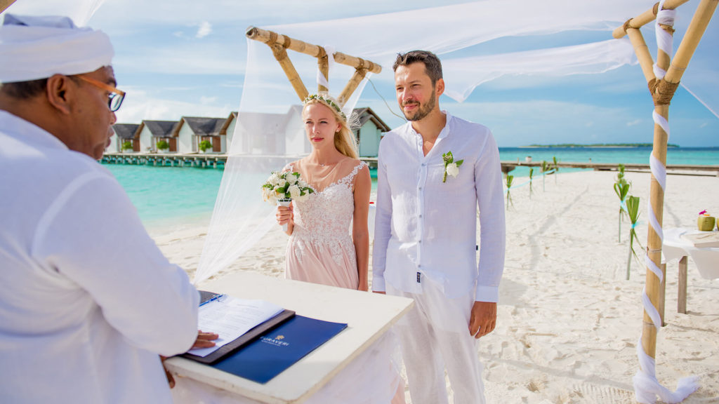 虽然作为一个外国人在马尔代夫结婚是不可能的,但它是你的誓言或祝福的一个完美目的地。有马尔代夫司仪主持交换誓言,并有婚礼专家来确保所有的婚礼和宣誓仪式顺利进行。