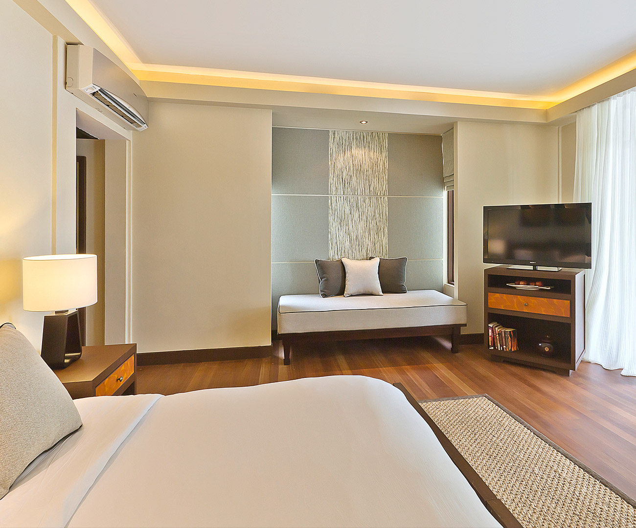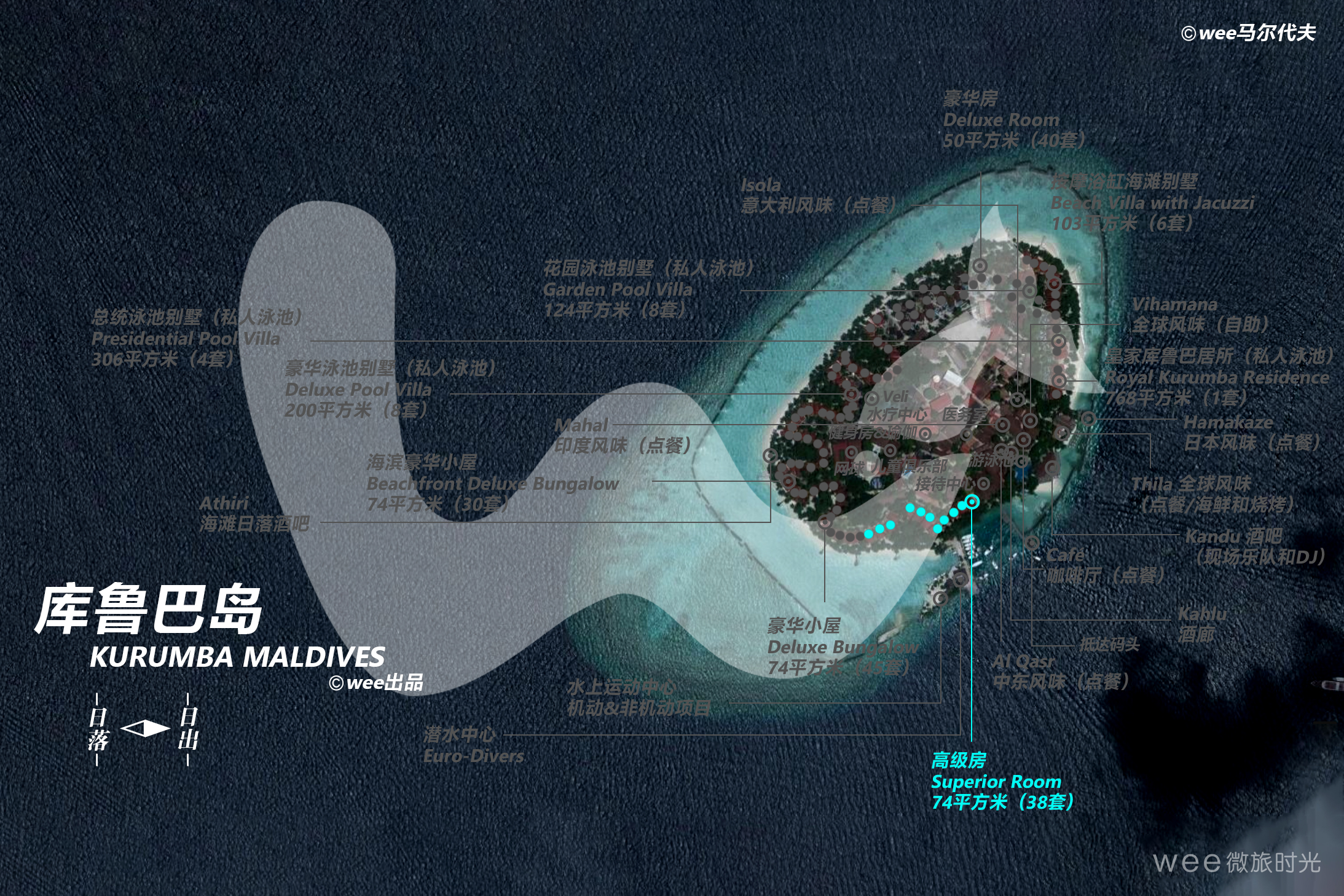 宽敞的双层殖民式建筑。每栋有四个房间,每个房间都有柚木地板,以及私人海岸观景平台,寝室可通往部分露天的明亮宽大浴室。
