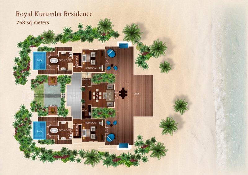 Royal Kurumba Residence 位于海滩上。两间卧室 - 两个私人豪华别墅,每个都有一个游泳池。豪华的共用用餐和起居区以及延伸至海滩的大型阳台。