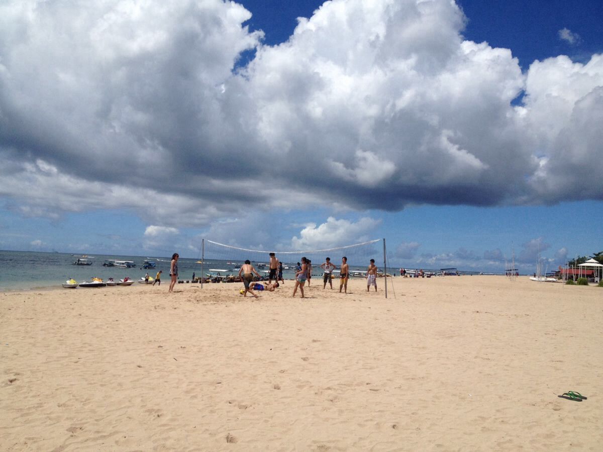认识的、不认识人相聚一起来一场别开生面的沙滩排球,沐浴着阳光,光脚踩在柔软的沙滩上,尽情跳跃、滚翻、流汗,尽情享受着沙排带来的乐趣,挥汗淋漓,畅快一番。过后点上一杯冰镇果汁,吹着海风欢笑交谈,没有比这更惬意的事了。