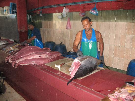 鱼市在马累北部的码头上,邻近本地市场,这里能够看得见很多种类的鱼,这里有金枪鱼还有甲鱼,种类繁多。鱼市场内有特地去皮取肉的师傅,一条4尺长的鱼,只需一分钟,便被分割成皮、骨、肉三份。