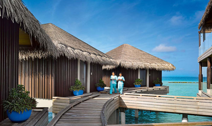 维拉岛的水疗中心坐落于岛屿最东边的海面上,和香槟酒吧一样,都是由一个架设在海面上的木质板桥链接,环境幽雅、宁静,充分地保证了游客的隐私。提供手法专一的水疗体验,以及融合了中西方多种不同的按摩手法,所有的护理产品也都追求天然的健康理念,志在为游客提供舒适且完美的身心享受。