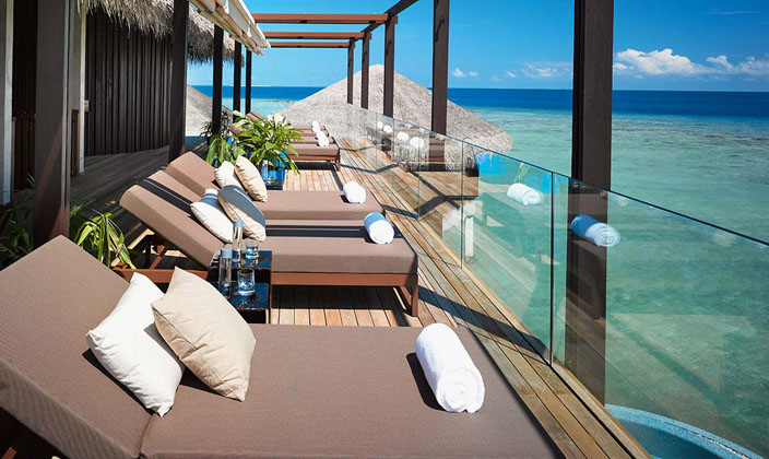 维拉岛的水疗中心坐落于岛屿最东边的海面上,和香槟酒吧一样,都是由一个架设在海面上的木质板桥链接,环境幽雅、宁静,充分地保证了游客的隐私。提供手法专一的水疗体验,以及融合了中西方多种不同的按摩手法,所有的护理产品也都追求天然的健康理念,志在为游客提供舒适且完美的身心享受。