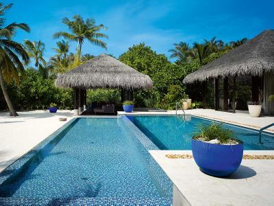 维拉私人岛(Velaa Private Island)2013年开业,是七星级的度假酒店。环岛周长1560米,在马尔代夫属于中型度假岛屿。沙滩5分/最高5分(沙滩100%环岛,平均宽度30米);浮浅5分/最高5分(房礁60%环岛,距离沙滩最近70米)。