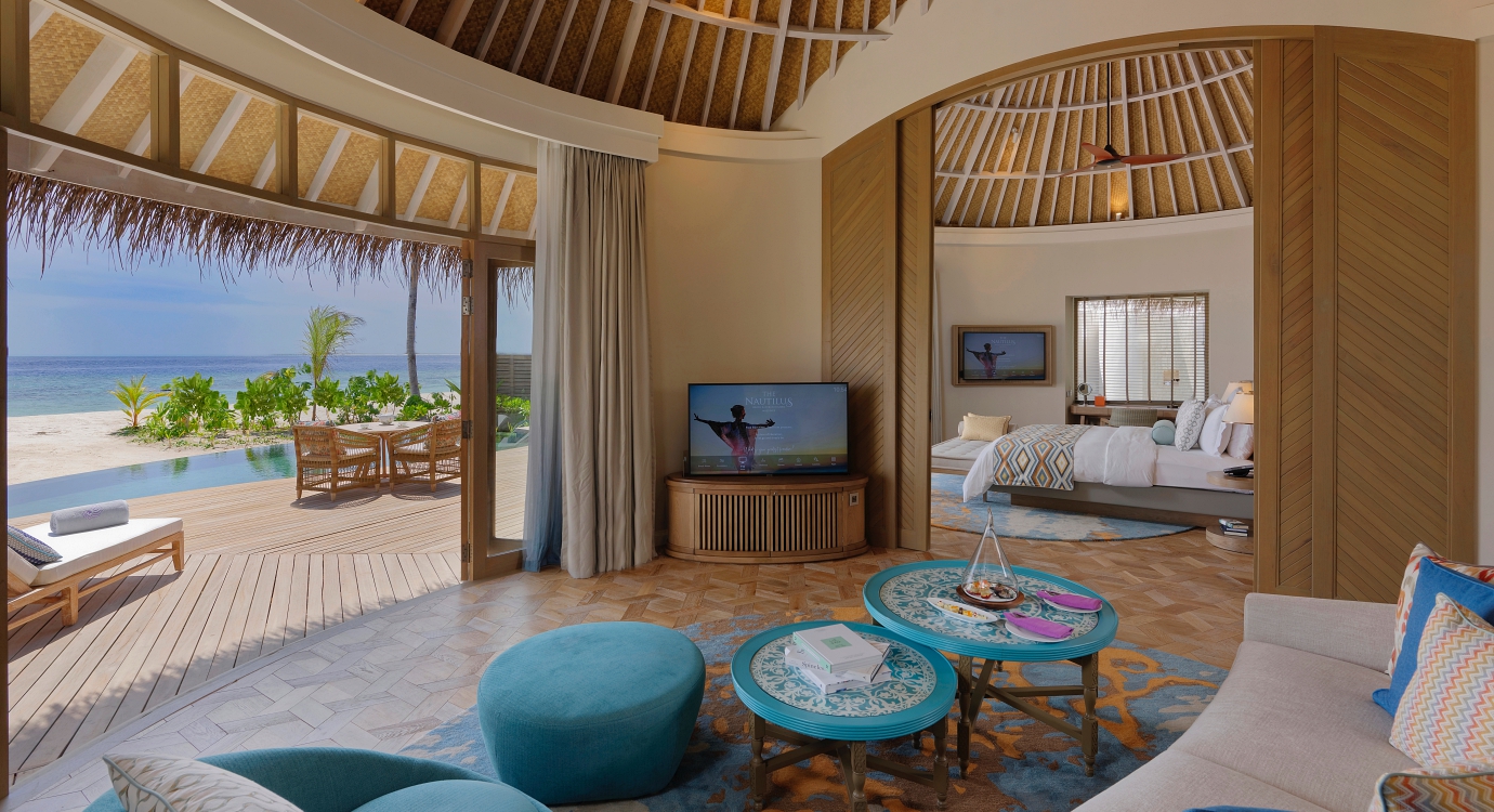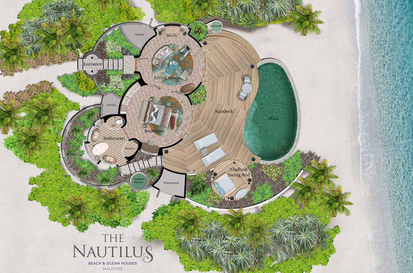 私人的日光浴平台直接与私人游泳池相连,那里有马尔代夫风格的秋千,可以在阴凉里度过慵懒的一天。拥有玻璃墙和空调的浴室享有花园庭院的景致,设有独立式浴缸,室内步入式花洒淋浴和配套的花岗岩梳妆台。室外花园淋浴可让您在热带天空下沐浴。