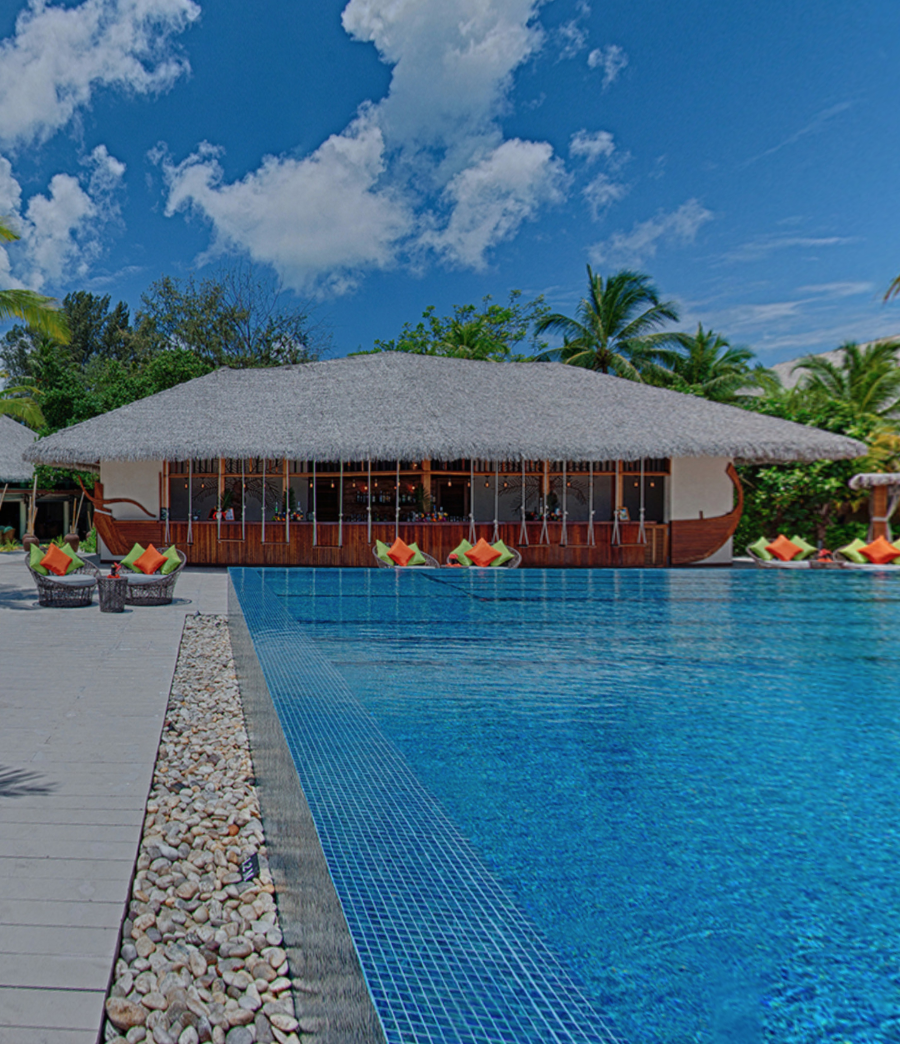 Undhoali 酒吧毗邻超大的无边游泳池,这是想要沐浴在阳光下,尽情享受游泳和品尝鸡尾酒的最佳去处。晚上,喝一杯清爽的饮料,吃些小吃,享受美丽的海岛风情。欢乐时光从你享受日落和酒吧的背景音乐开始。